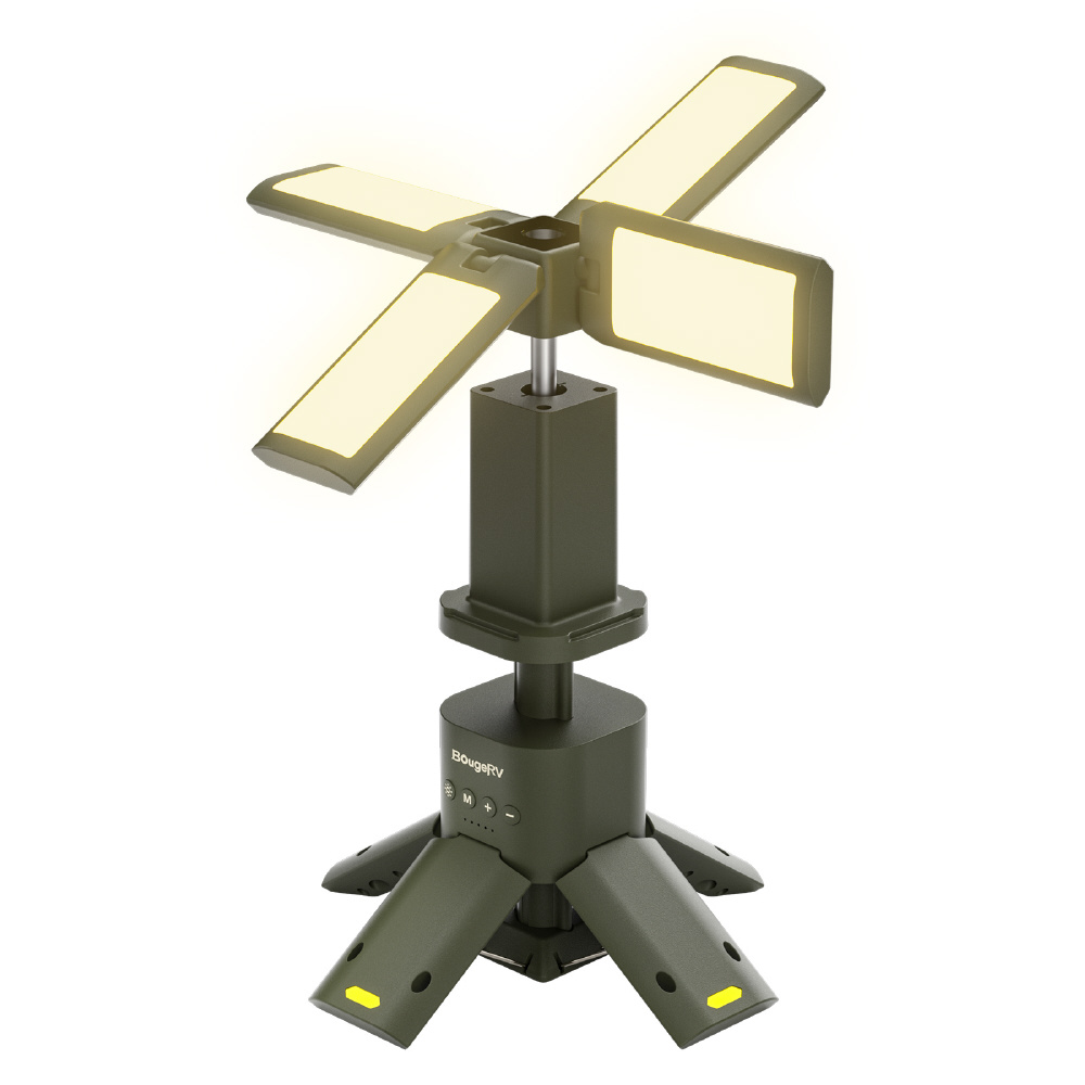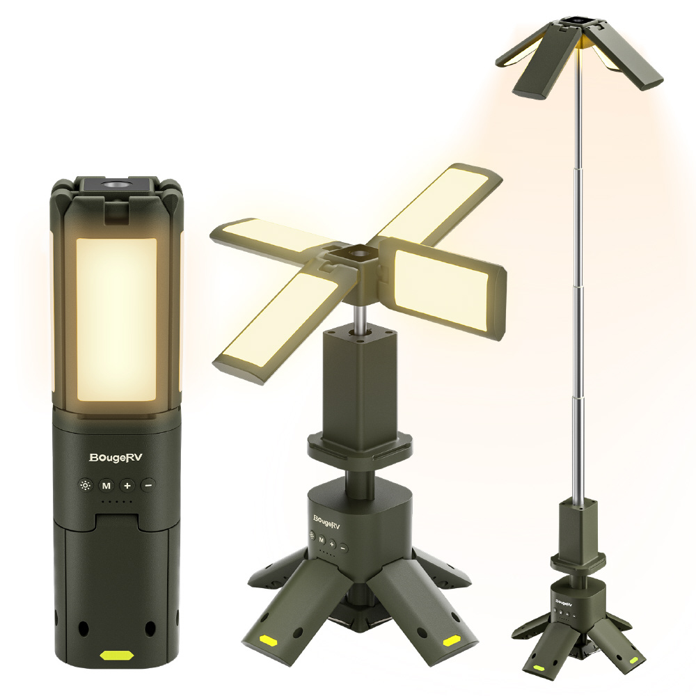 BougeRVの新型キャンピングランタンは、折りたたみと高さ調節が可能で、重量はわずか0.97kgと非常に軽量です。
