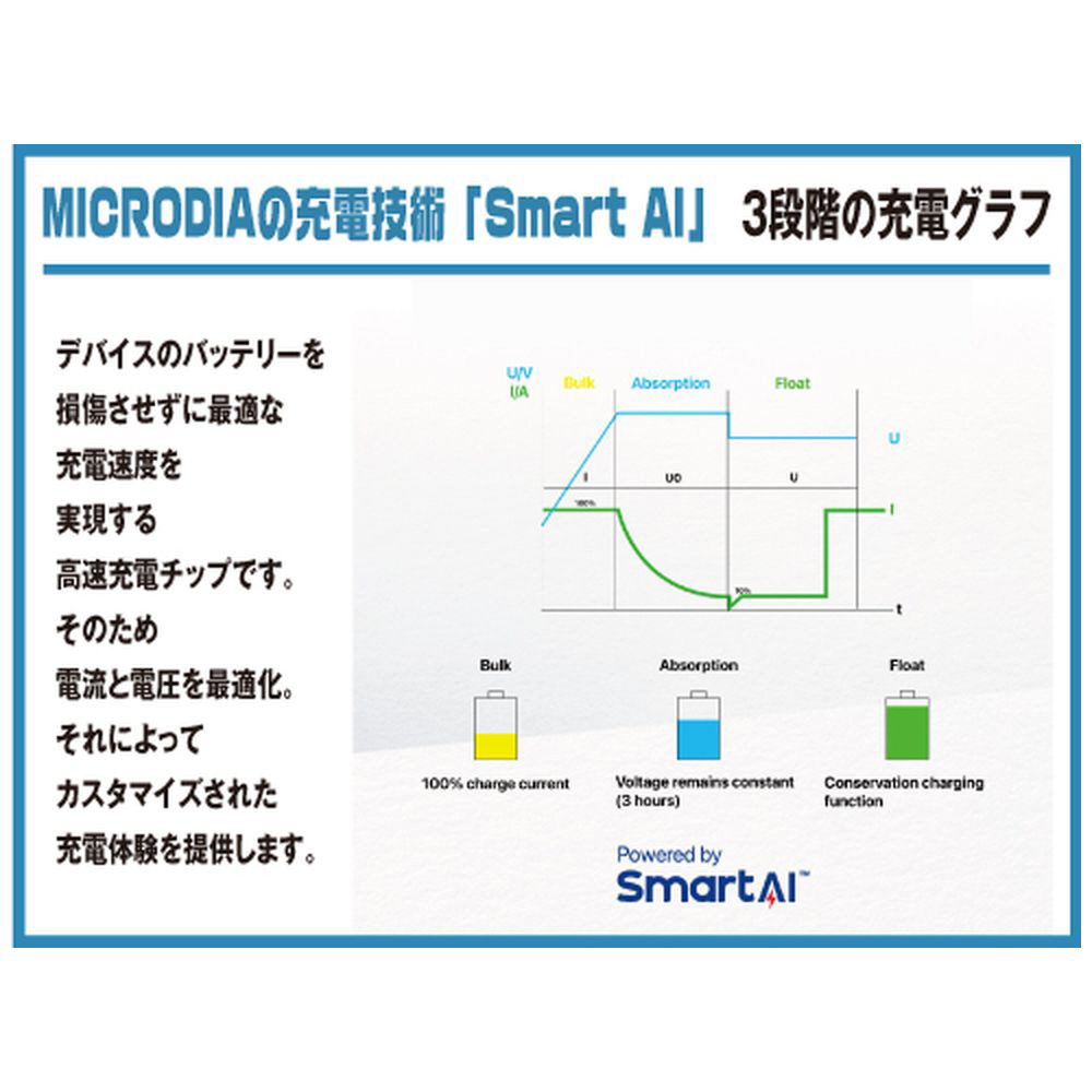 Microdiaによって開発されたSmartAIテクノロジーは、デバイスに最適な電流と電圧を供給し、