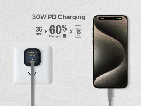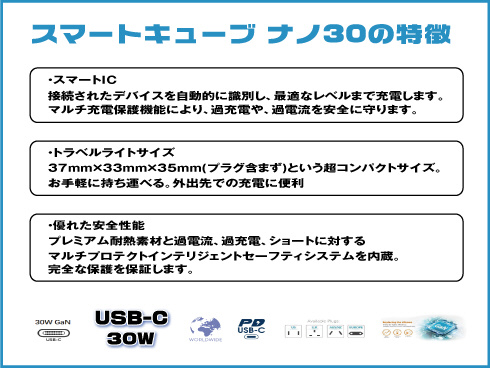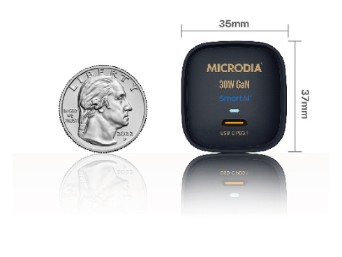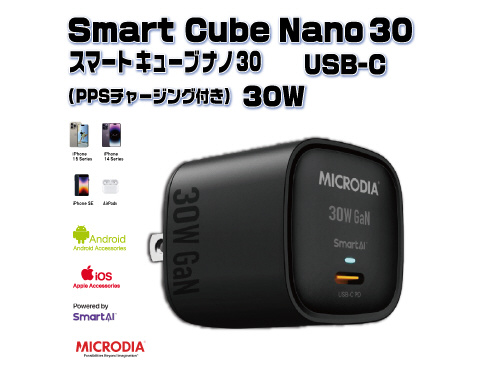 (黒)MICRODIA SmartCube Nano 30 w/ PPS充電 PD GaNウォールチャージャー、USB-Cポート、GaN 30W PDチャージャー