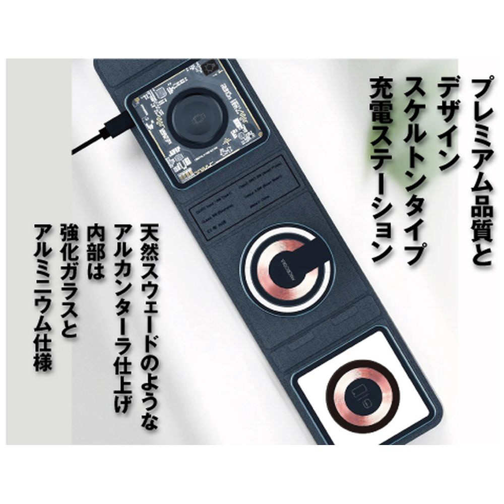 この充電器はiPhone、Apple Watch、AirPods向けに3つの独立したワイヤレス充電ポイントを提供します。