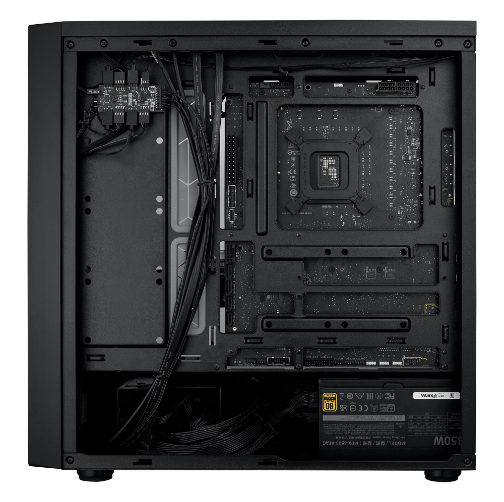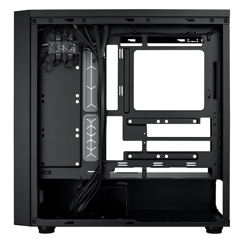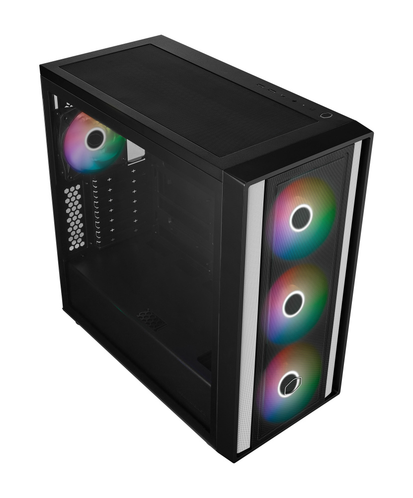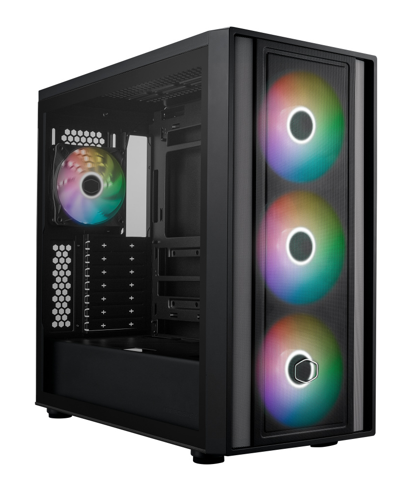 アドレサブルRGBファンを4基標準搭載。背面コネクタ設計のマザーボードに対応した、拡張性と冷却性能に優れたミドルタワー型PCケース
