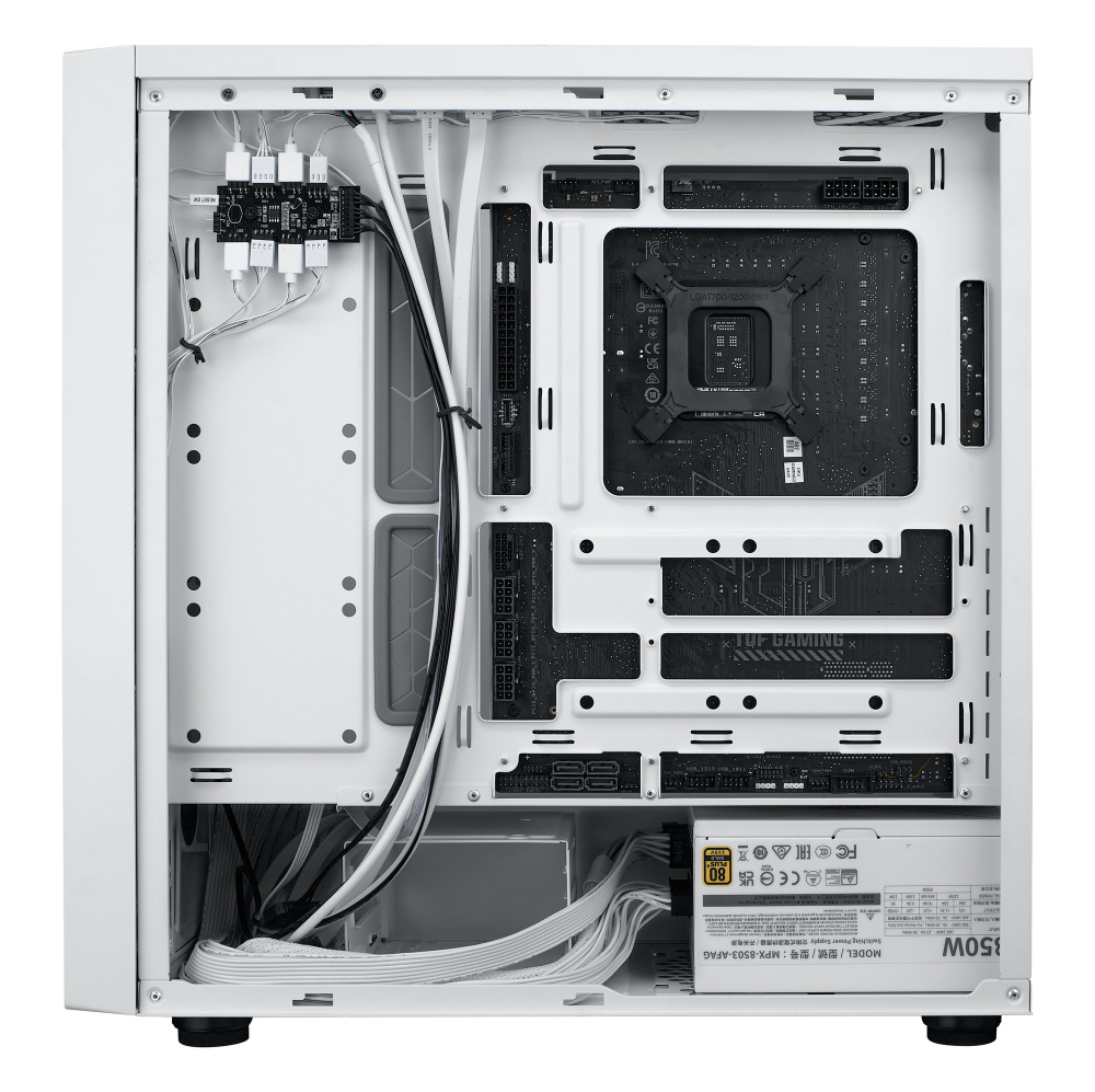 アドレサブルRGBファンを4基標準搭載。背面コネクタ設計のマザーボードに対応した、拡張性と冷却性能に優れたミドルタワー型PCケース
