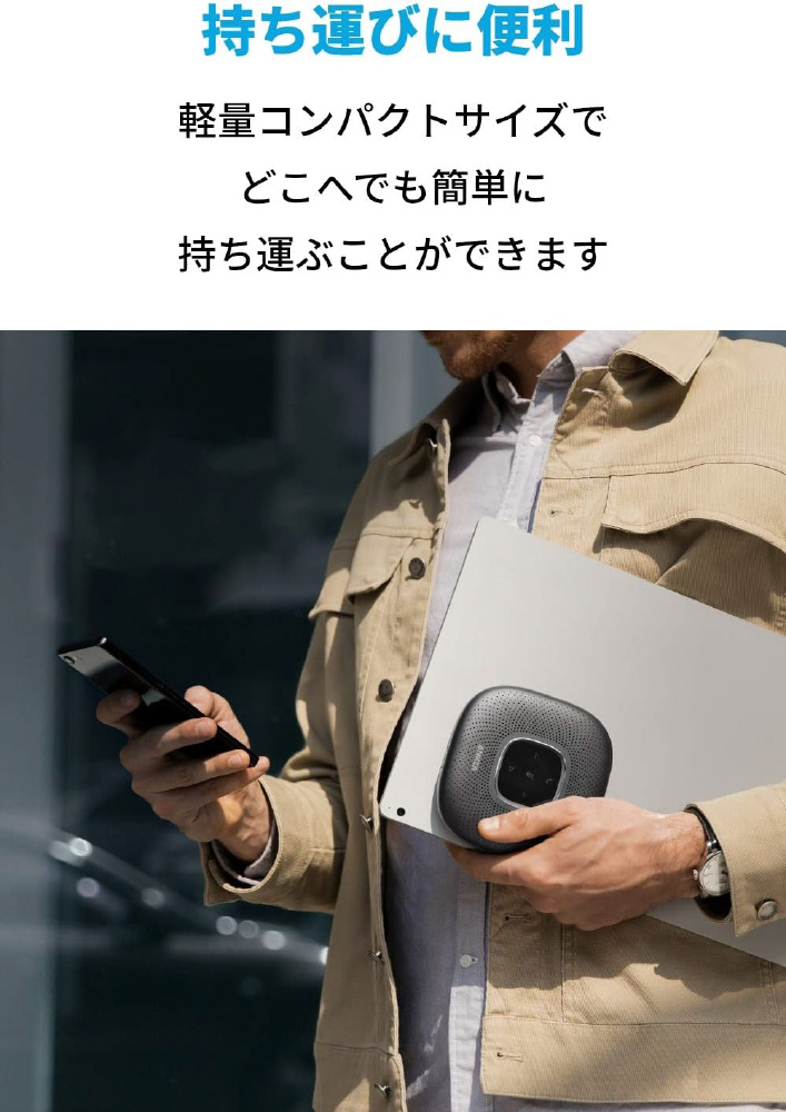 「Anker PowerConf 会議用スピーカーフォン (オートゲインコントロール/優れた音声処理機能/モバイルバッテリー機能搭載/トラベルポーチ付属)」