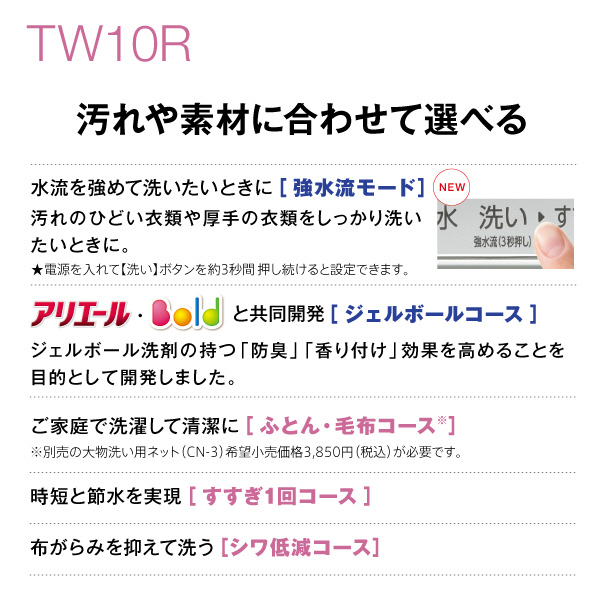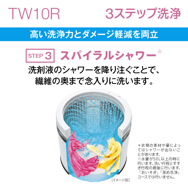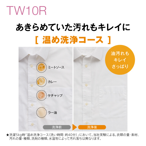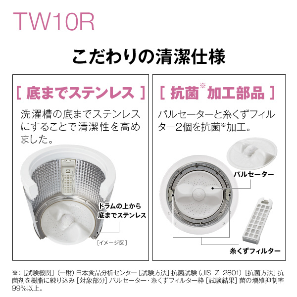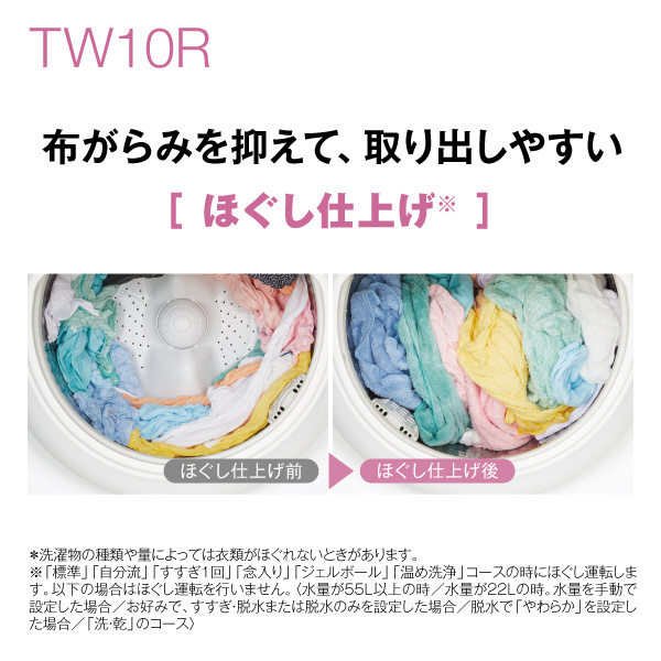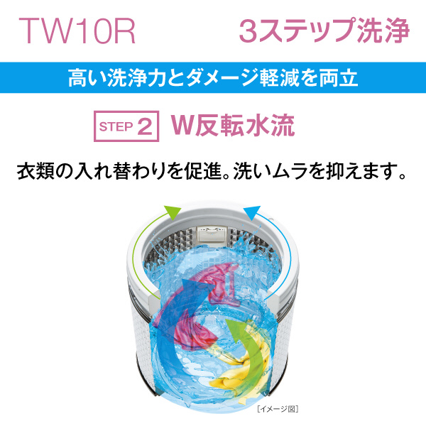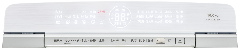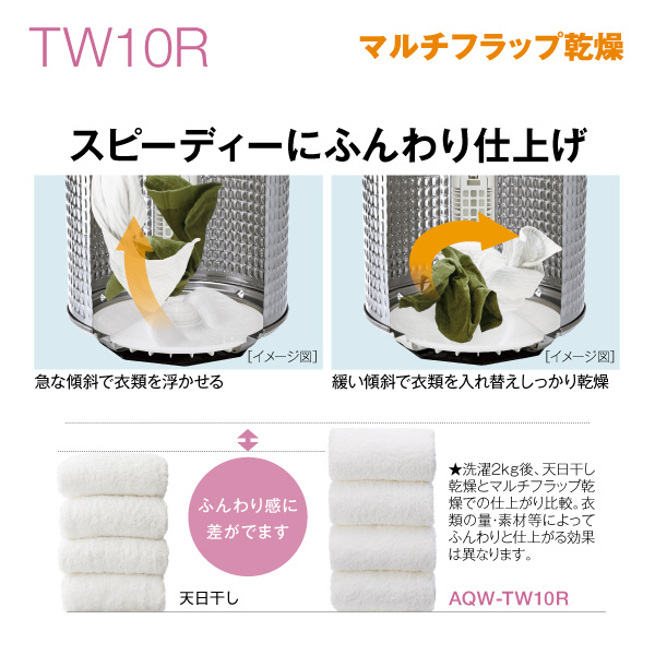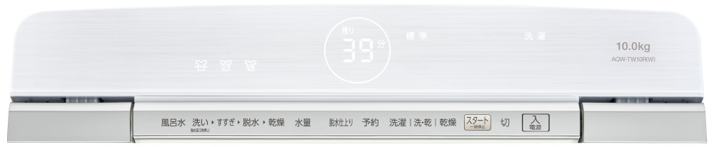| 商品名 | 縦型洗濯乾燥機 AQW-TW10R(W) [洗濯10.0kg /乾燥5.0kg /ヒーター乾燥(排気タイプ) /上開き] |