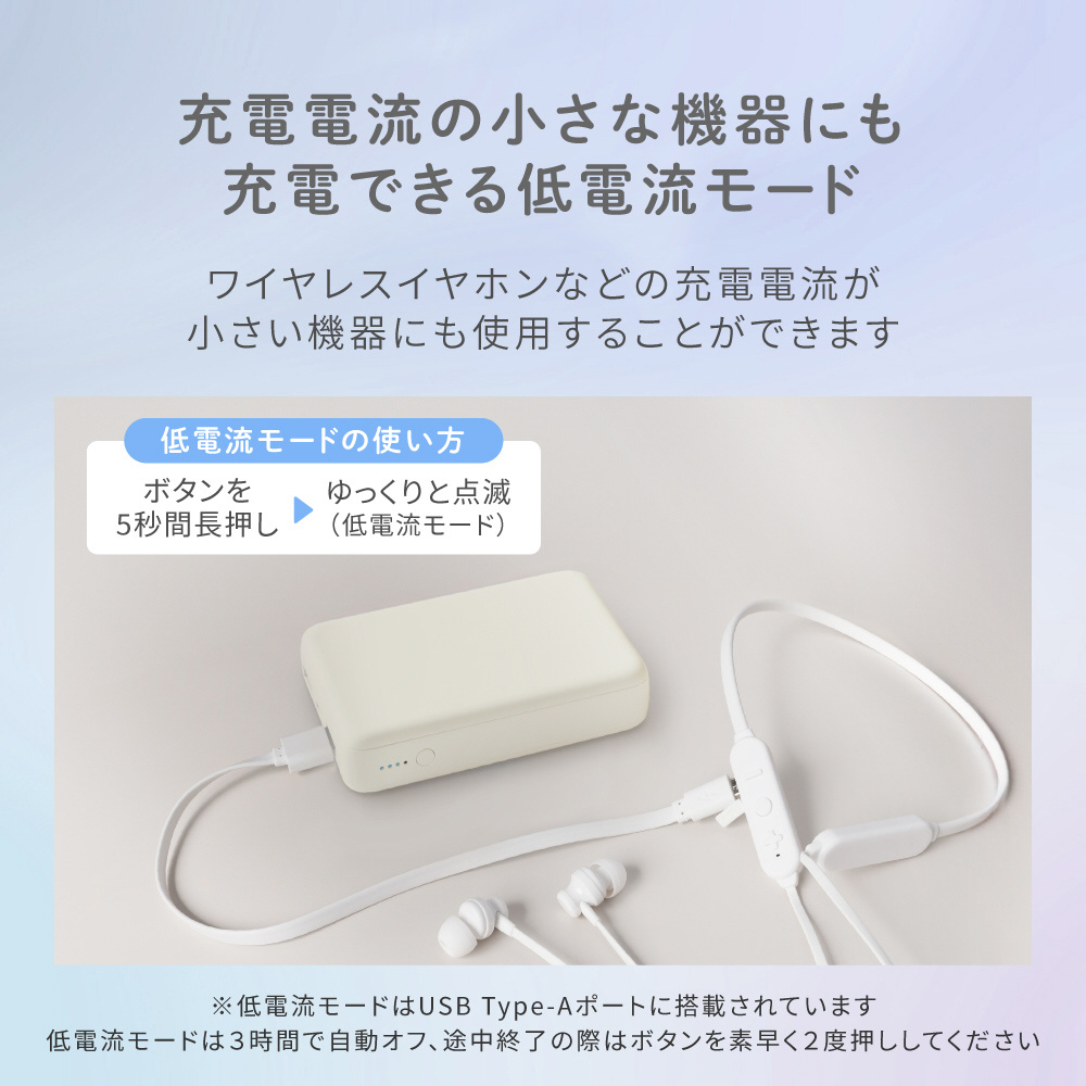 モバイルバッテリー 10000mAh USB Type-C入出力/USB Type-A出力 低電流モード搭載