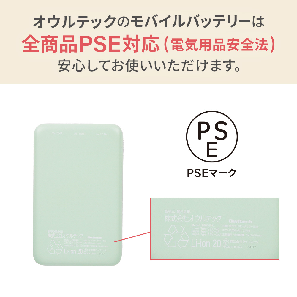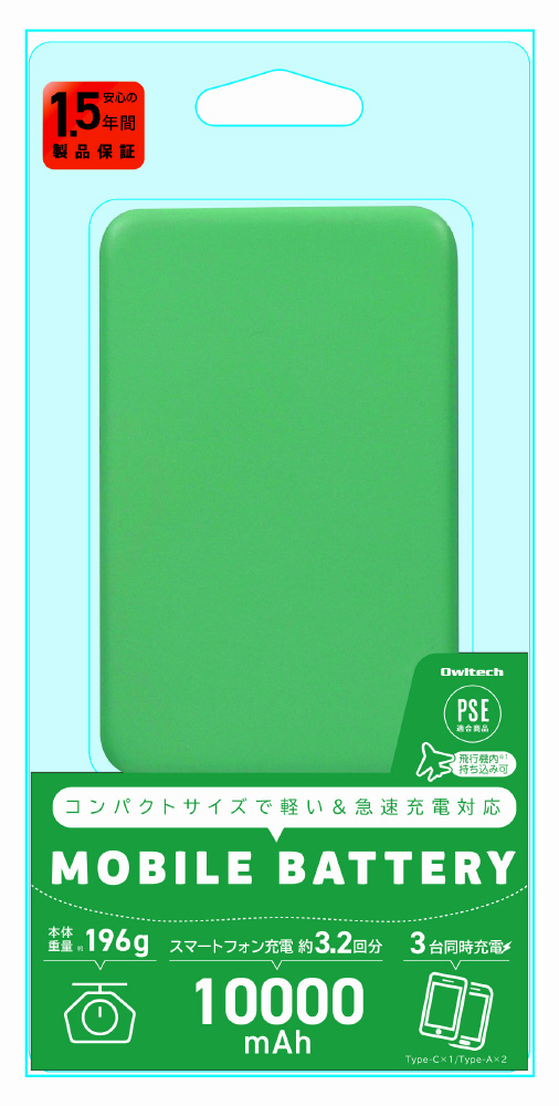 モバイルバッテリー 10000mAh USB Type-C入出力/USB Type-A出力 低電流モード搭載 セージグリーン OWL-LPB10012-SAG [3ポート]
