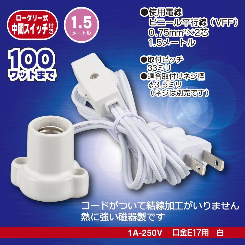 磁器レセップE17 1.5mコードスイッチ付ホワイト HS-L1715ZRS-W