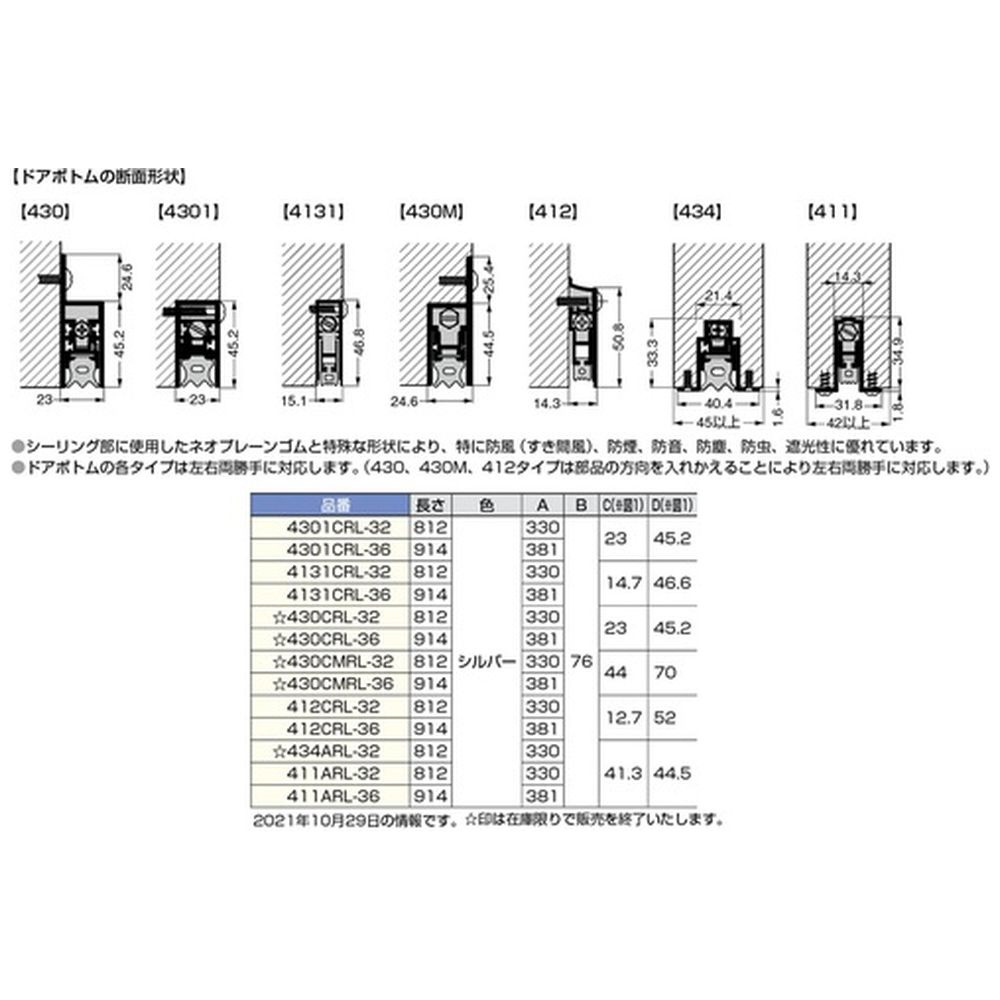 ■すき間を防ぐシーリングが、ドアの吊元側より出る構造のため、床面をこすらず、軽くスムーズに作動し密閉性を高くします。
