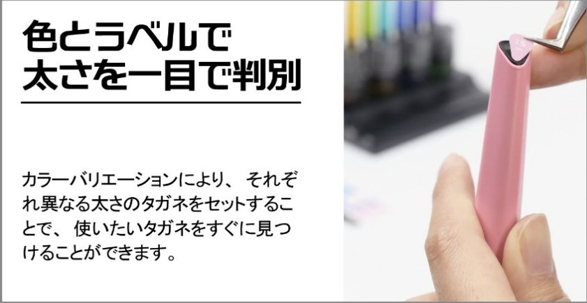 カラーバリエーションで太さの異なるビットを装着し、使いたいサイズをすぐに見つけることが出来ます。