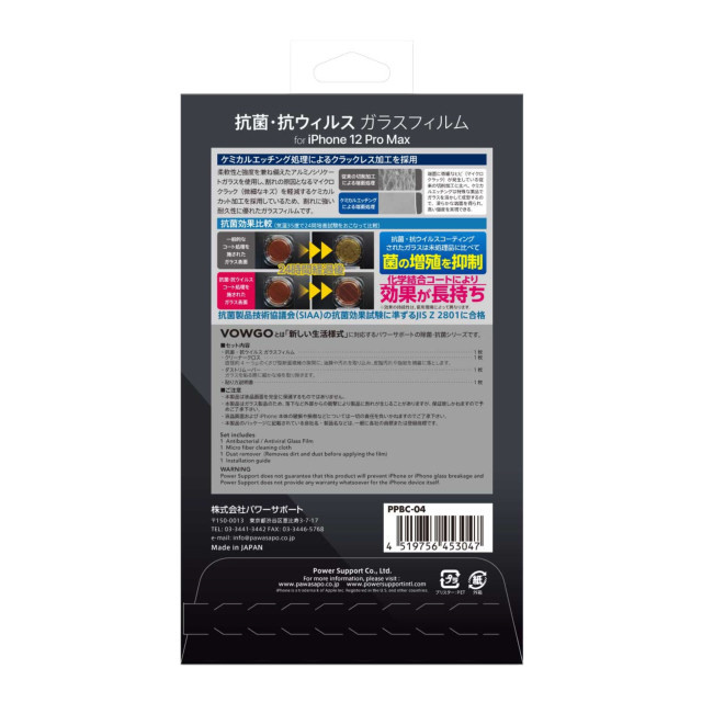 商品名 iPhone 12 Pro Max VOWGO 抗菌・抗ウィルス Glass Film
