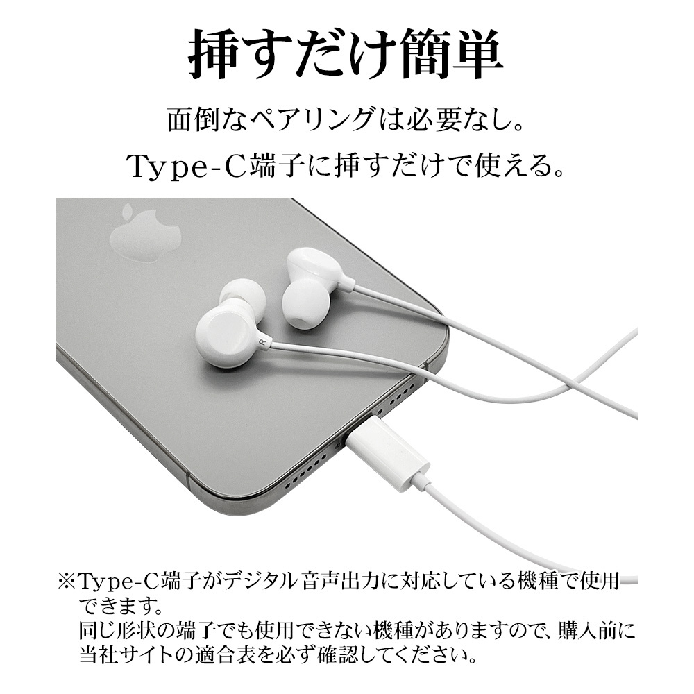本製品はType-C端子用のステレオイヤホンマイクです。音楽や視聴を楽しむことができます。
