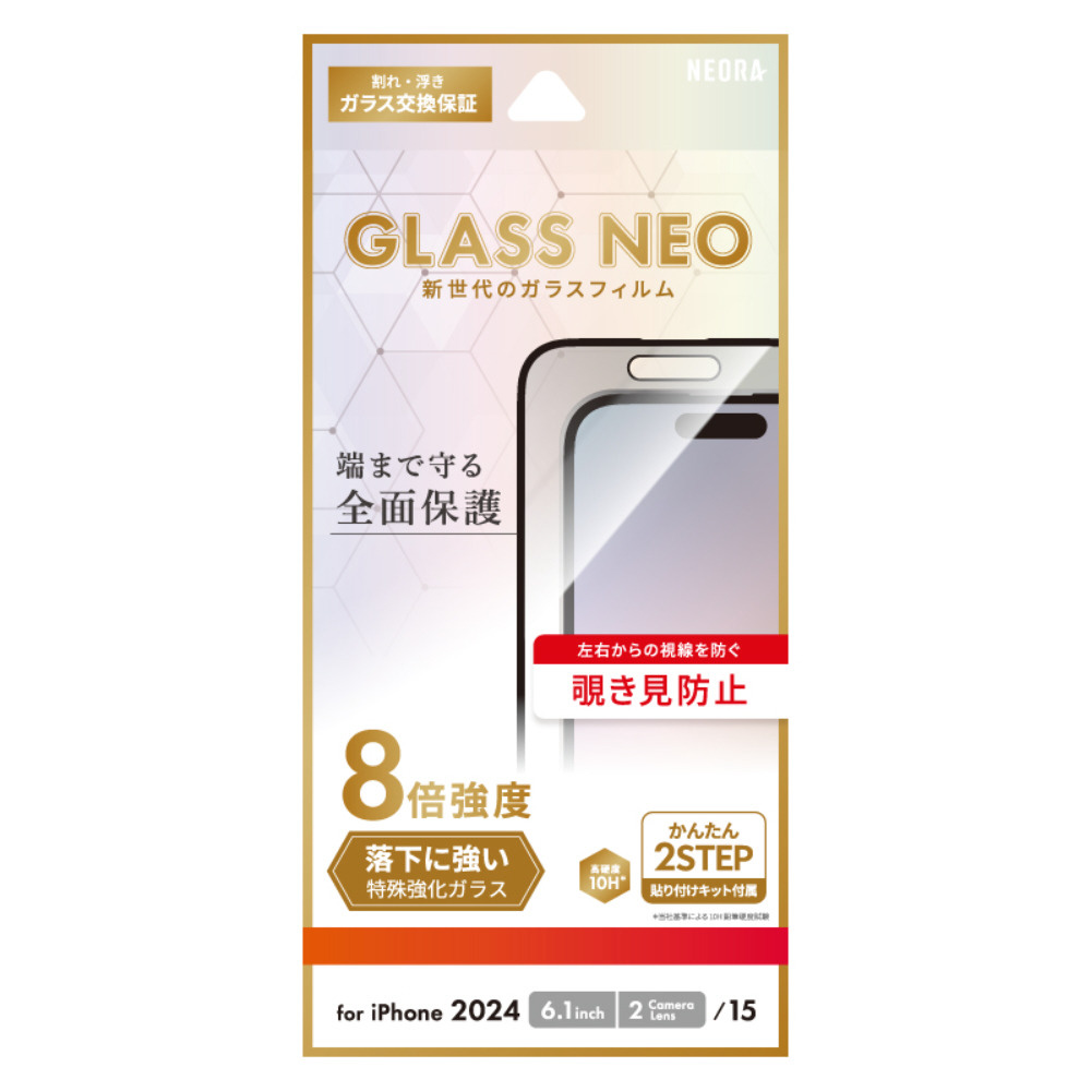 iPhone 16(6.1インチ) ガラスフィルム「GLASS NEO」全面保護 覗き見防止180° BM-IM24FGFN 【864】