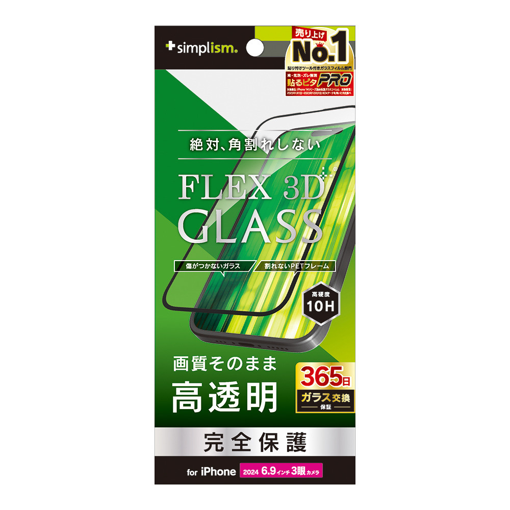 iPhone 16 Pro Max(6.9インチ) [FLEX 3D] 高透明 複合フレームガラス ブラック TR-IP24L3-G3-CCBK