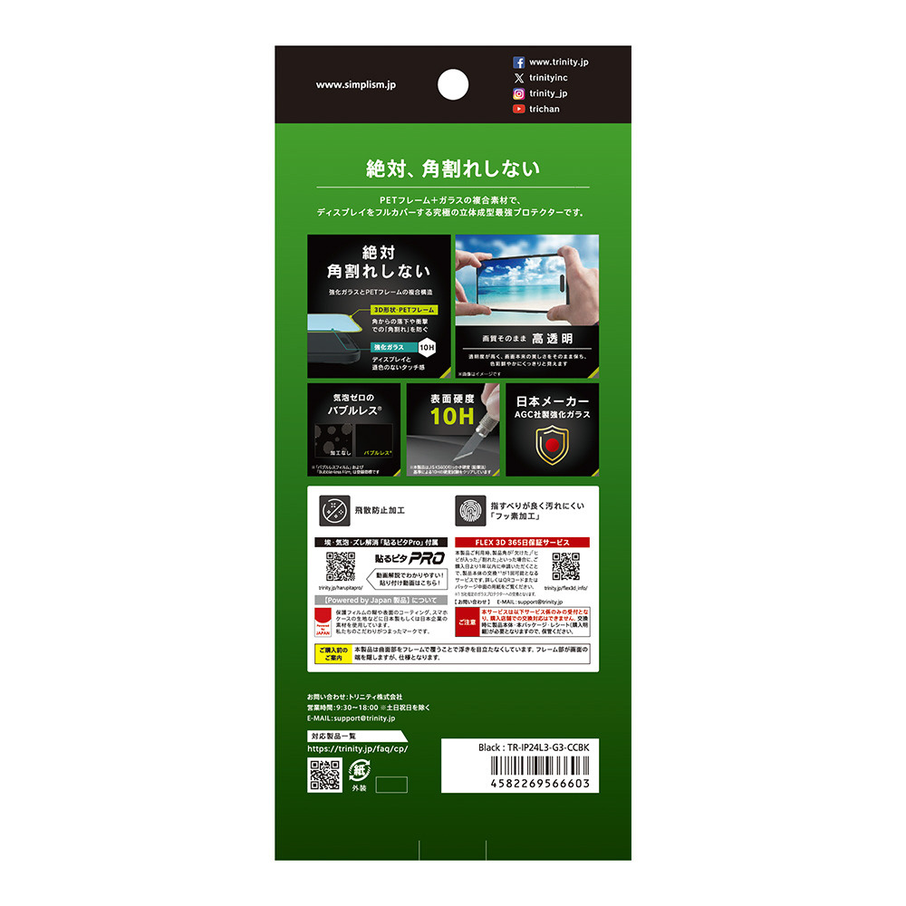 角割れしない AGC社製強化ガラス採用 PETフレーム 立体成型プロテクター 高透明