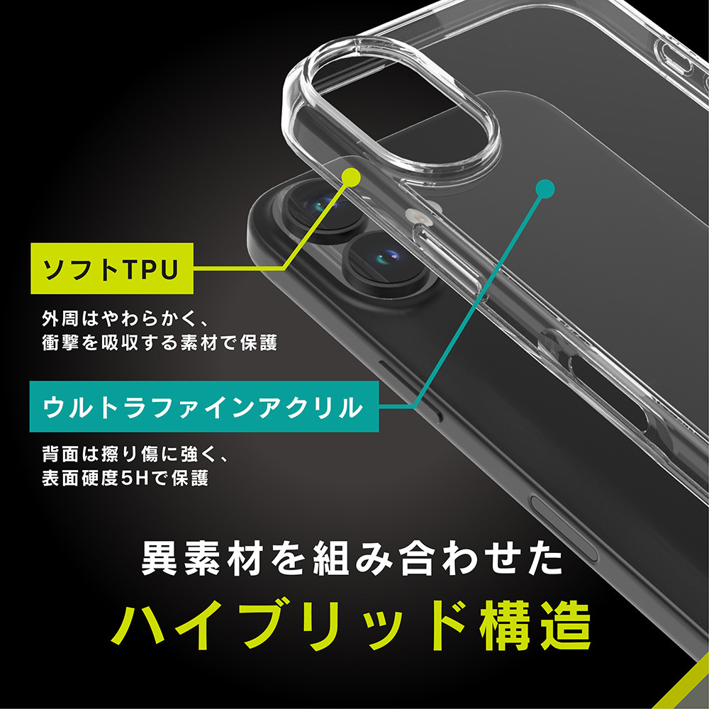 背面の超硬質素材×側面のやわらか素材 衝撃吸収 ハイブリッドクリアケース