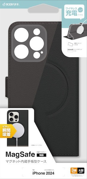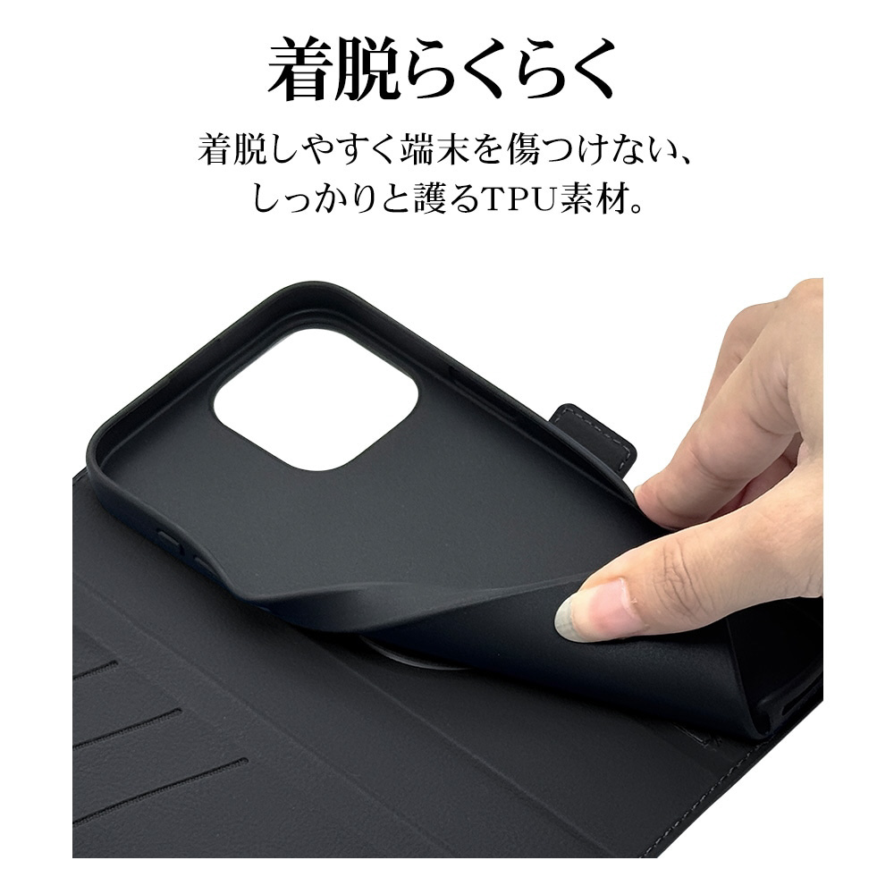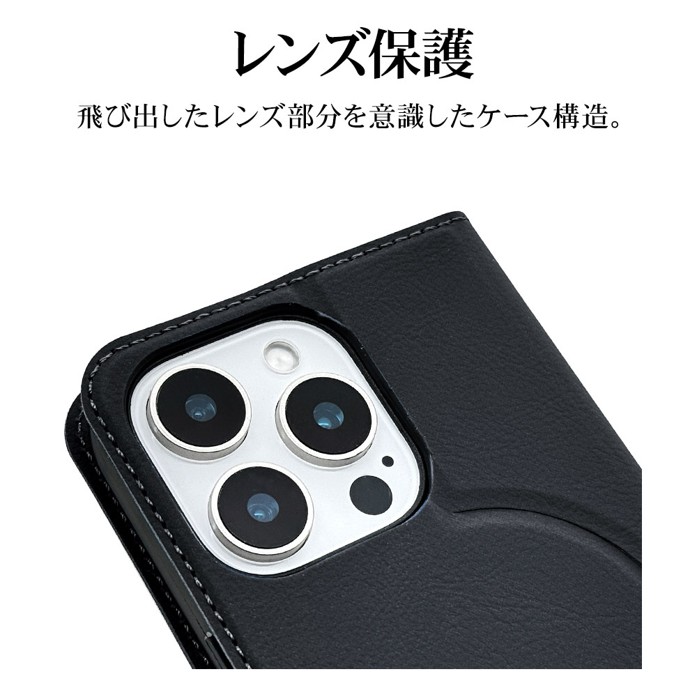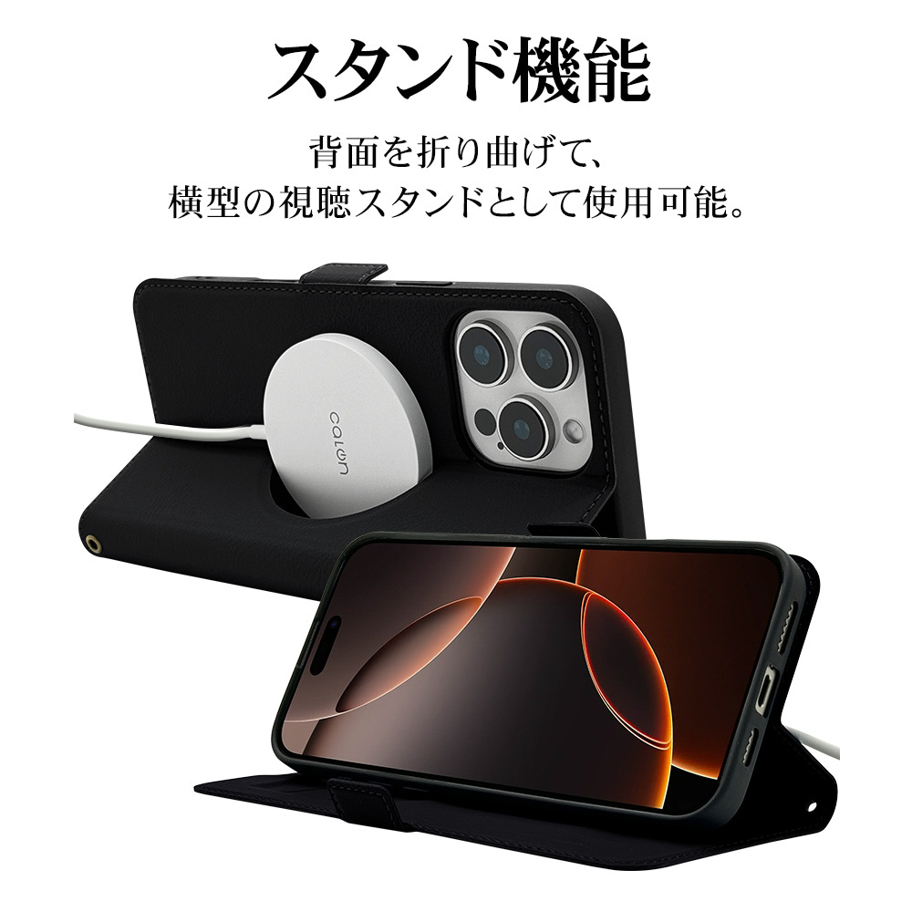 本製品は液晶画面側と背面側の両面を保護できるMagSafeリング付きの薄型で持ちやすい手帳型ケースです。