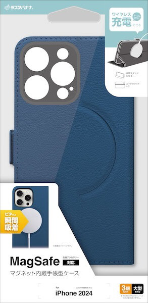 | 商品名 | iPhone 16 Pro Max(6.9インチ)手帳型ケース サイドマグネット Magsafe対応 ネイビー 8272IP467PBSMMNV |