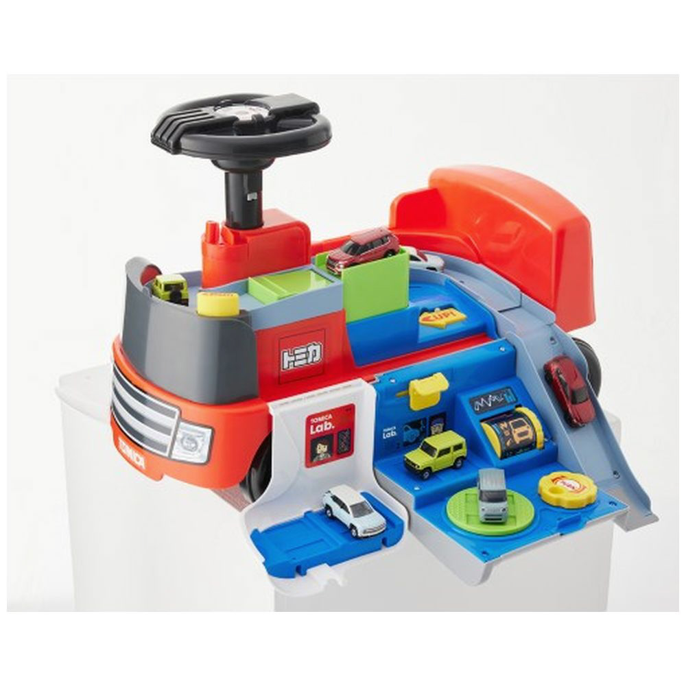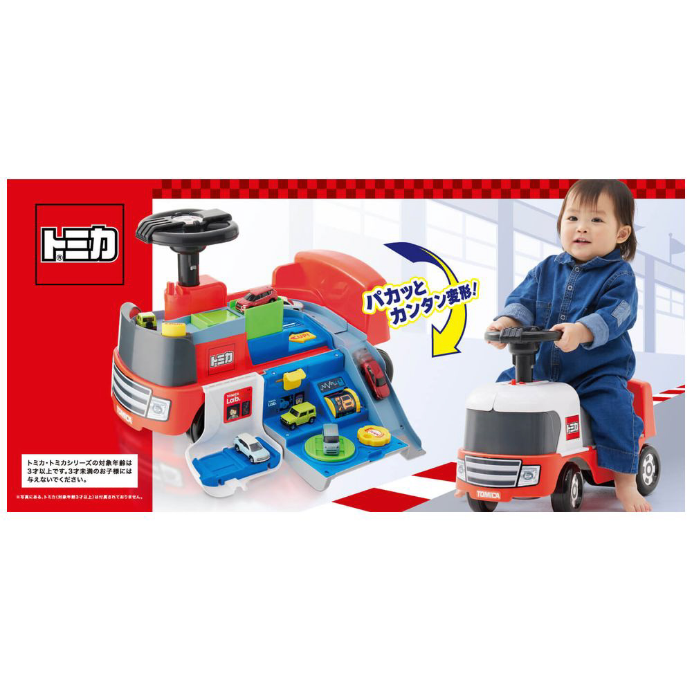 あこがれのトミカに1才から乗れちゃう!パカっと開けばトミカの整備ピットにカンタン変身!