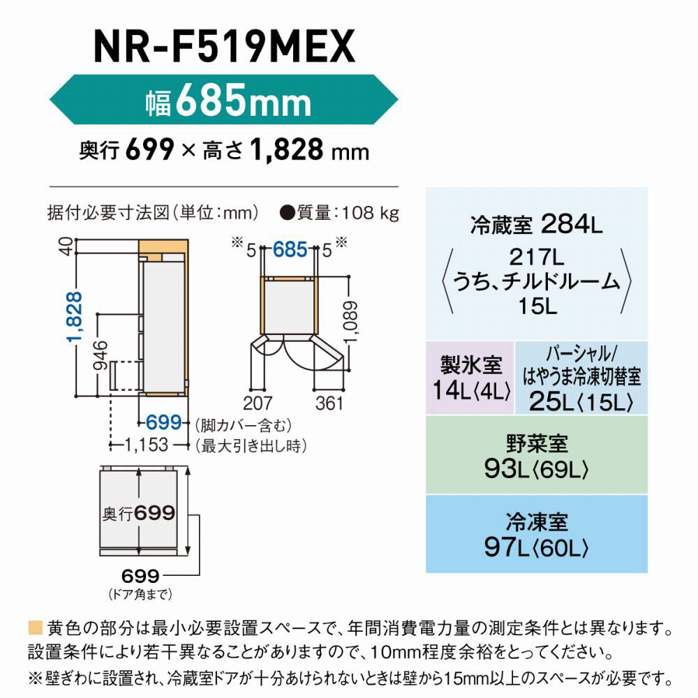 冷蔵庫 MEXタイプ セラミックオフホワイト NR-F519MEX-W [幅68.5cm /513L /6ドア /観音開きタイプ /2023年]【生産完了品】 【基本設置料金セット】