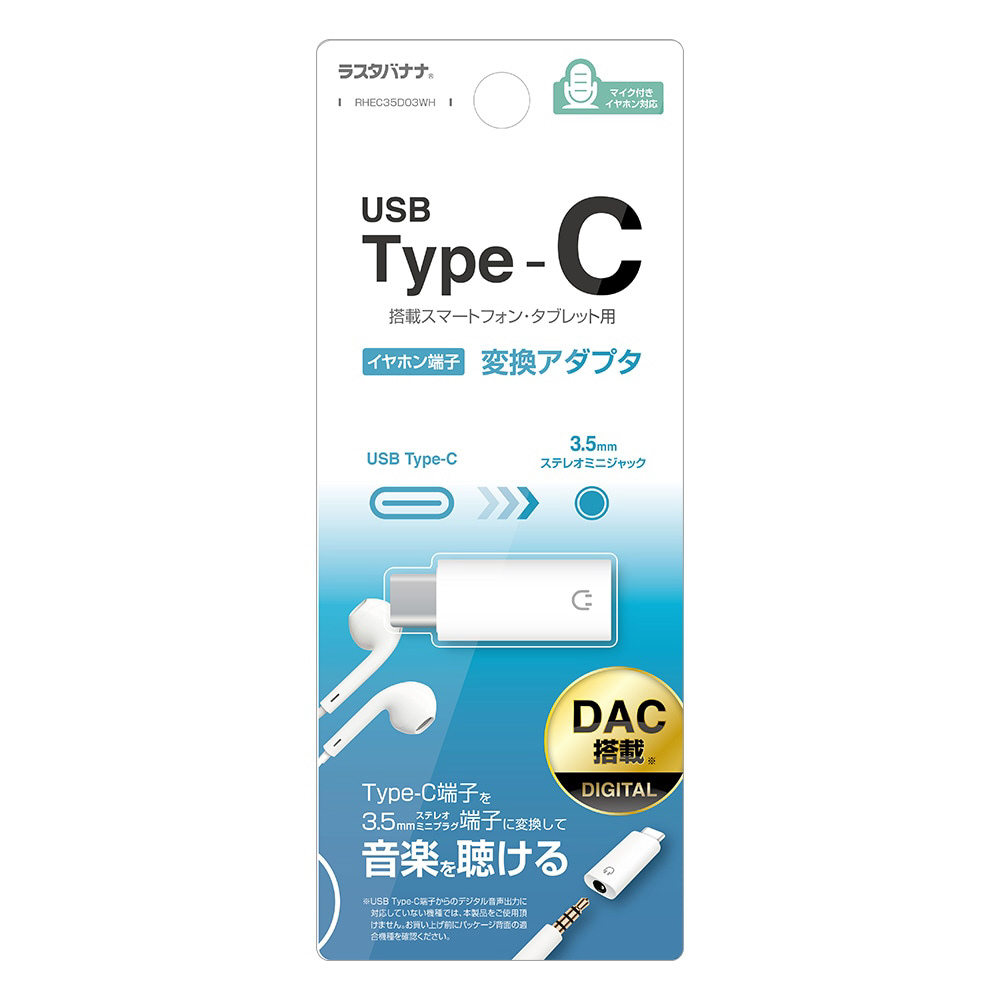 TypeC-3.5mmイヤホンジャック デジタル変換アダプタ ホワイト RHEC35D03WH