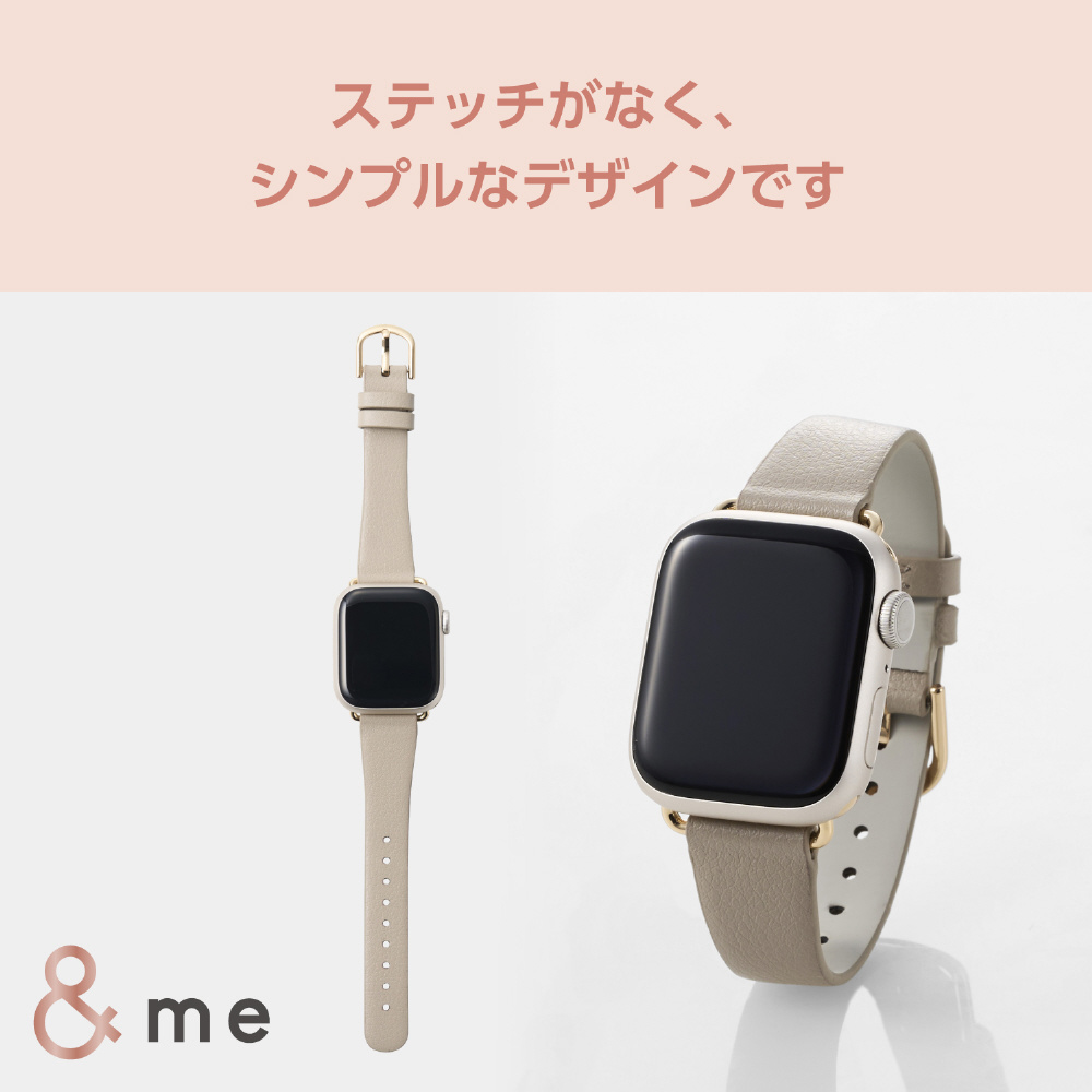 アップルウォッチ バンド Apple Watch SE (第2世代 / 第1世代) / Series 9 / 8 / 7 / 6 / 5 / 4 / 3 / 2 / 1 41mm 40mm 38mm レザー ベルト スリム &me グレージュ AW-41BDLJGB