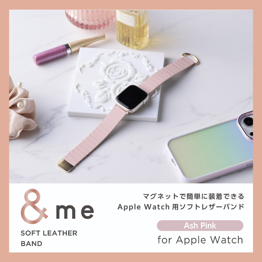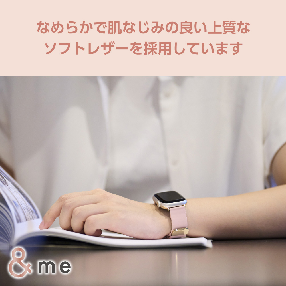 アップルウォッチ バンド Apple Watch SE (第2世代 / 第1世代) / Series 9 / 8 / 7 / 6 / 5 / 4 / 3 / 2 / 1 41mm 40mm 38mm レザー マグネット ベルト &me アッシュピンク AW-41BDLMAGPN 【864】