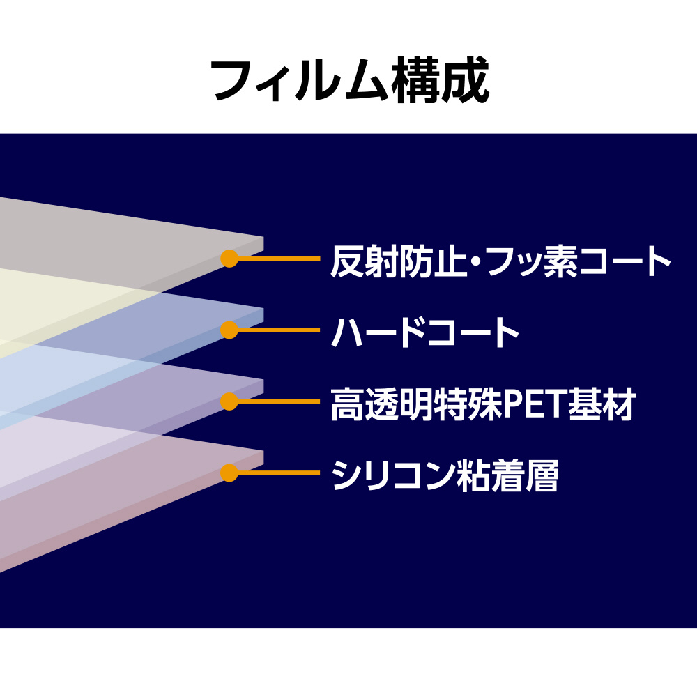 フィルム表面の「すり傷」や「爪あと」などが残りにくい表面硬度と保護力で液晶画面を美しい状態のまま保ちます。