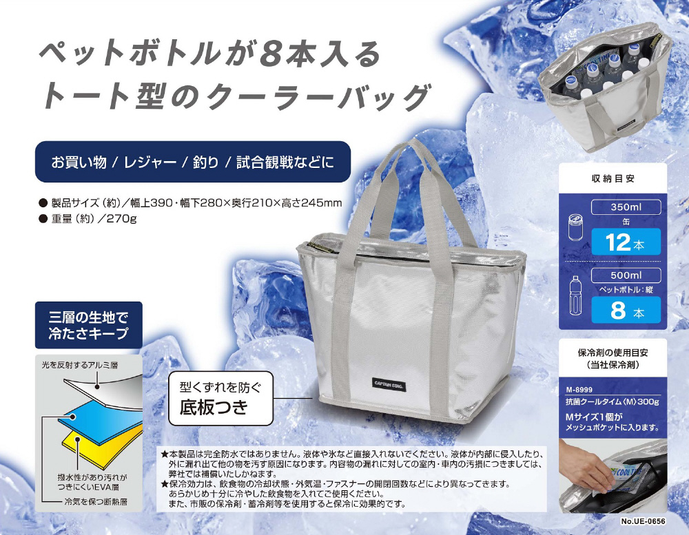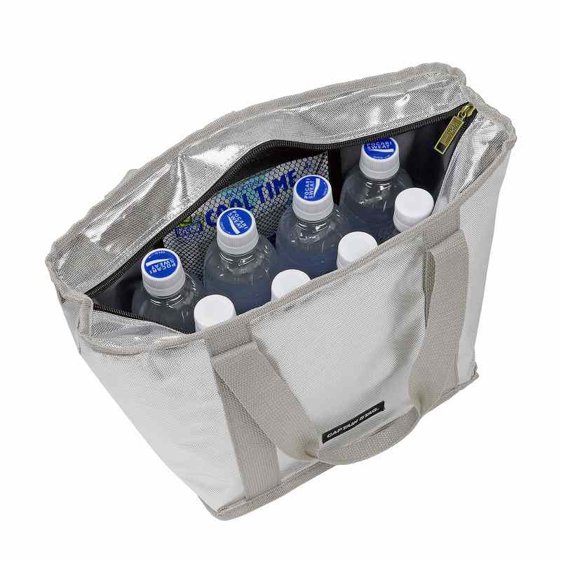 ペットボトルが8本入る、トート型のクーラーバッグ。