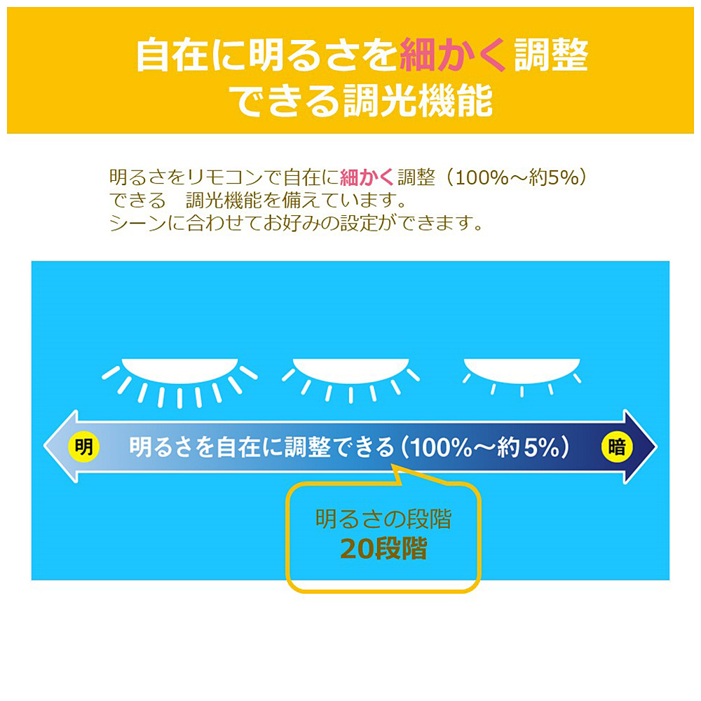 連続調光(約5%〜100%)