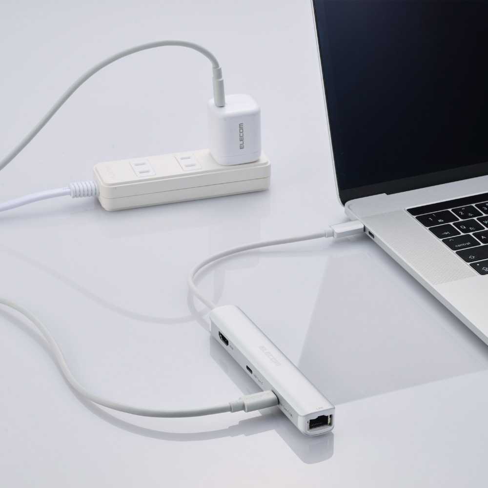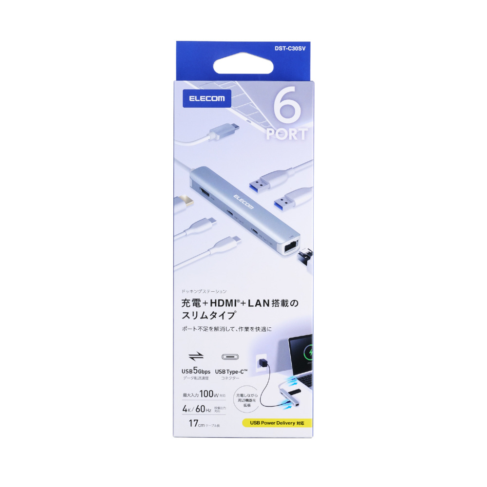 6ポートをスティックサイズに。薄型ノートパソコンの機能を拡張する、USB Type-C(TM)接続ドッキングステーションです。映像出力ができるHDMI(R)、インターネットの有線接続が可能なLANポートを備えながら、持ち運びに便利なスリムな形状を実現。USB Power Delivery対応で、パソコンに最大85Wまでスピード充電しながら周辺機器を使えます。