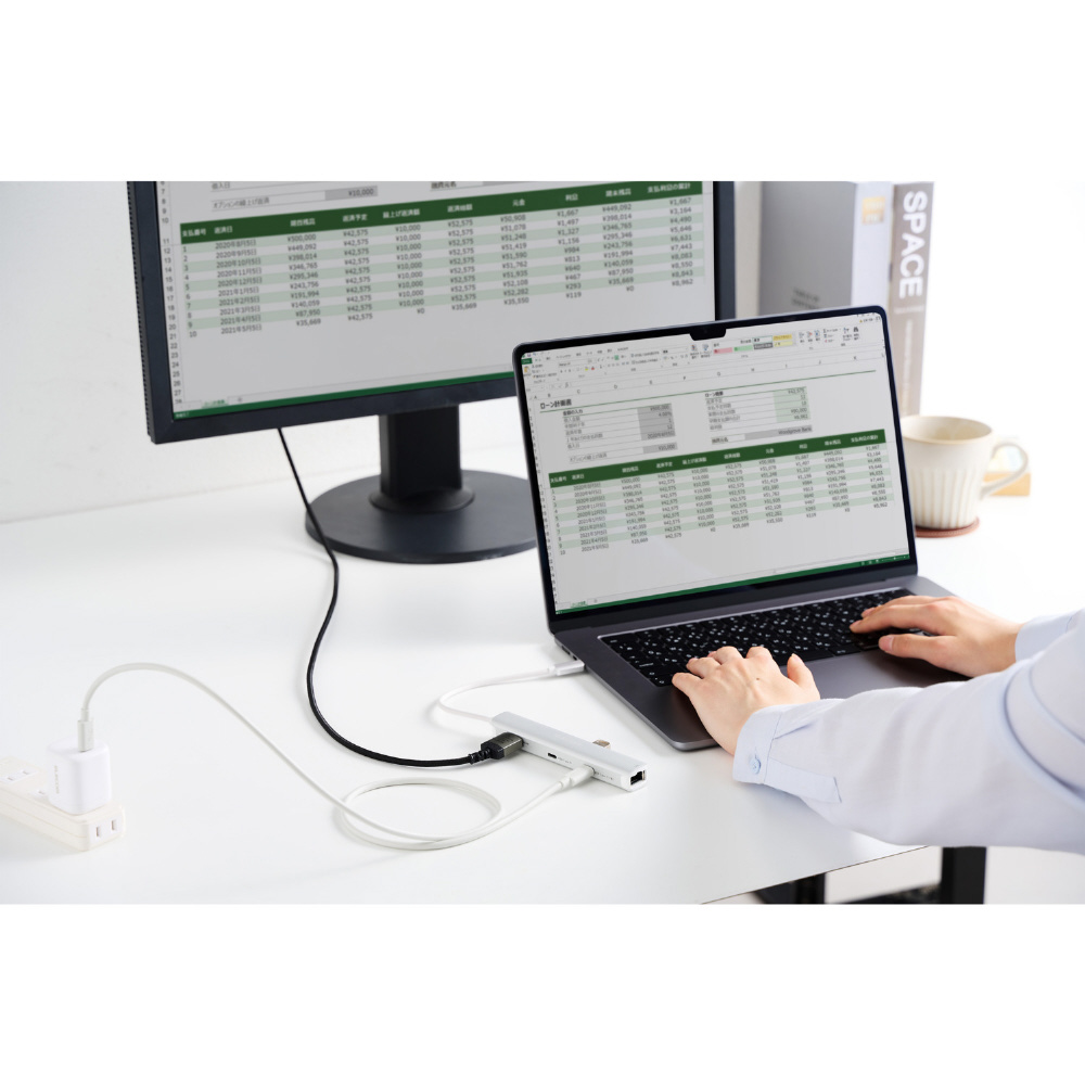 USB Type-Cポート搭載パソコンに最大6ポートを増設可能。さまざまなデバイスを1本のケーブルで一括接続できます。