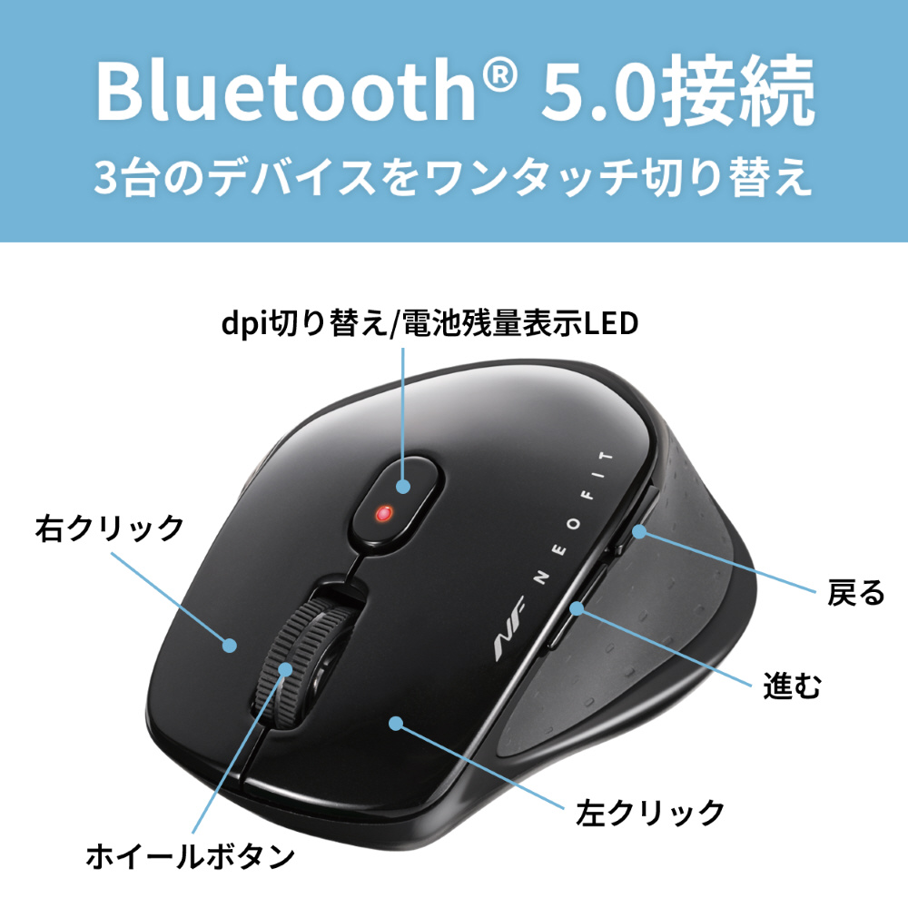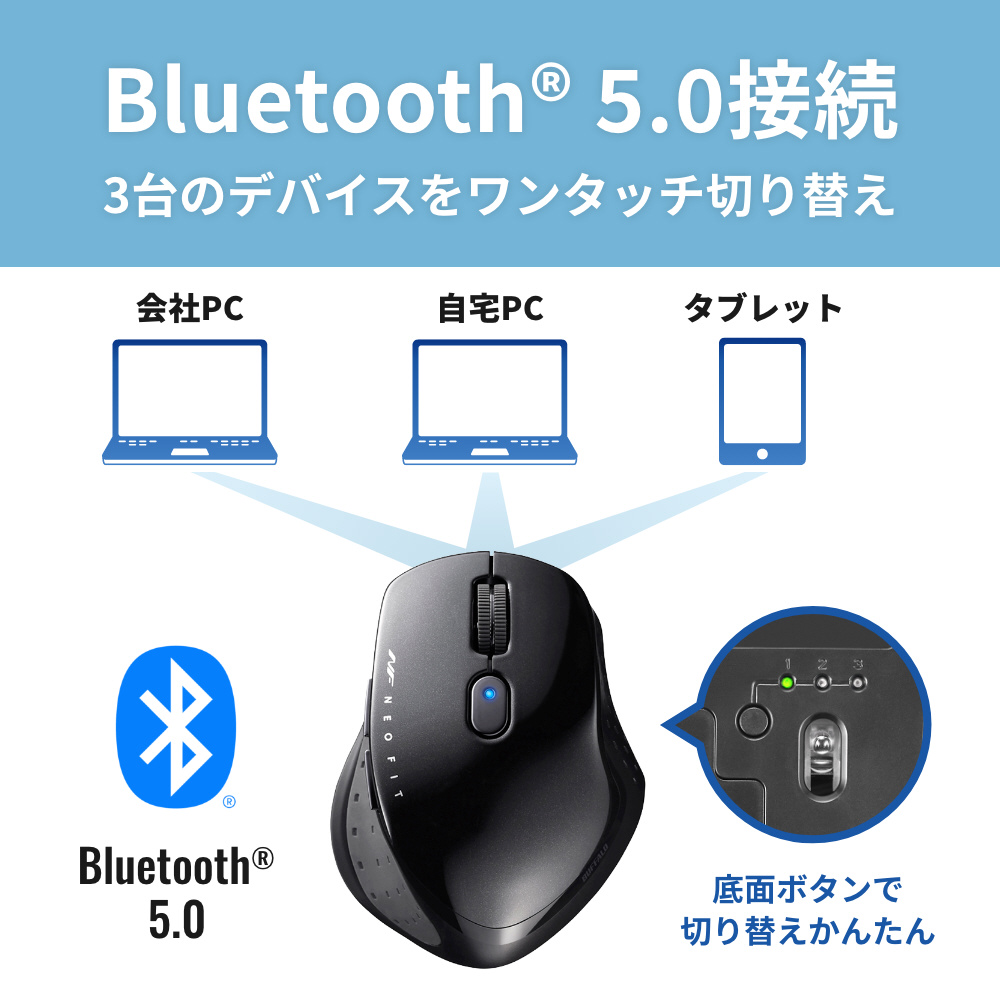 「NEO FITマウス Bluetooth5.0/BlueLED光学式/静音/5ボタン/接続先切替機能付き」