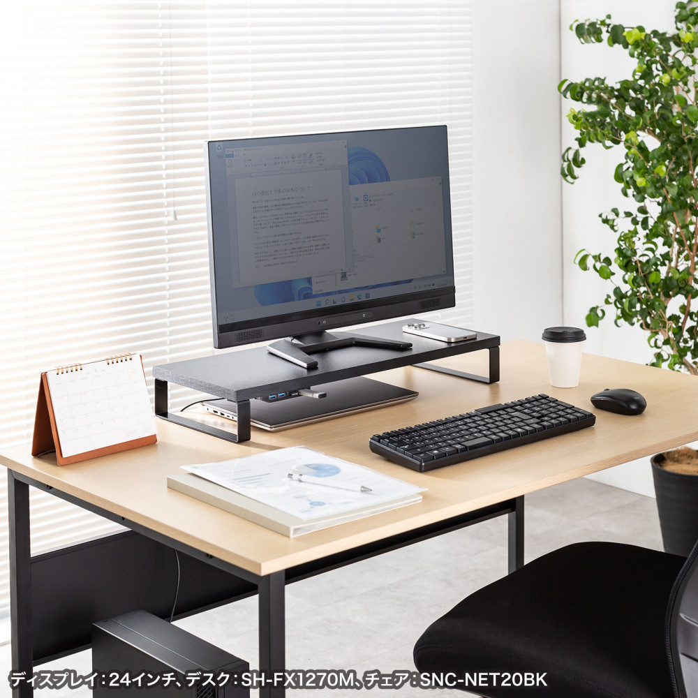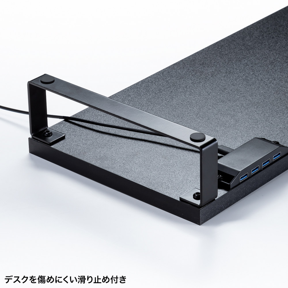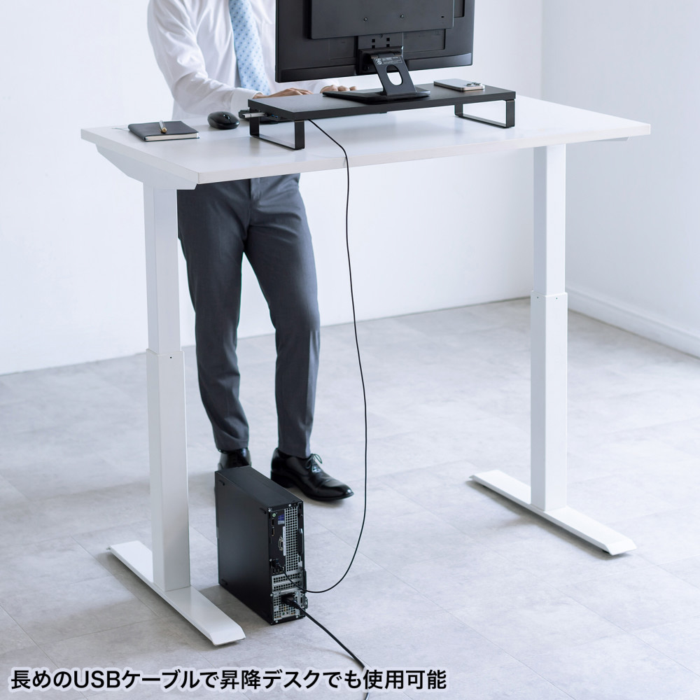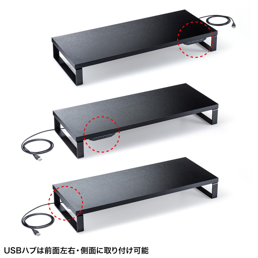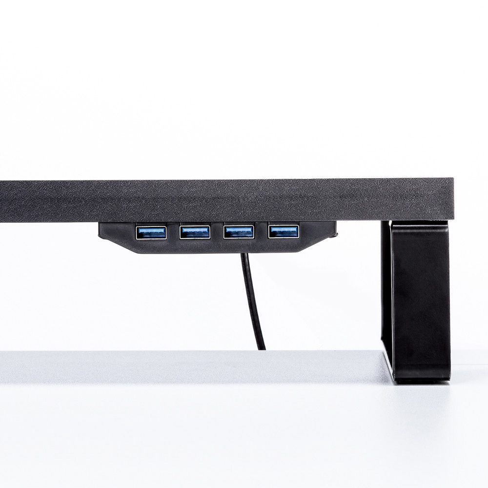 USB機器との接続に便利なUSBハブと一体化のモニター台。