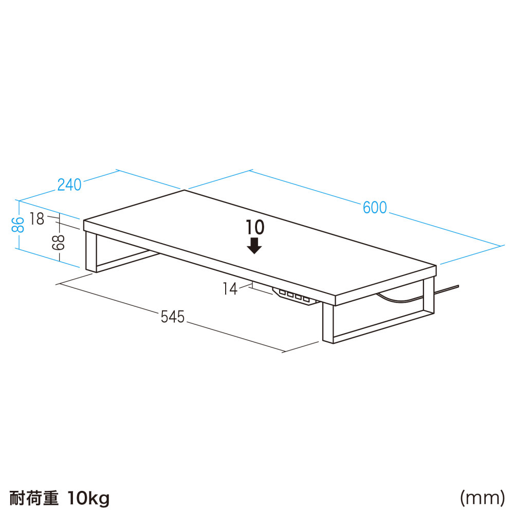 | 商品名 | モニタースタンド [W600xD240xH86mm] USB-Aハブ付 ブラック MR-LC215BK |