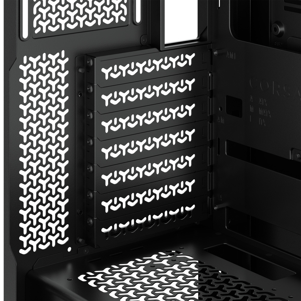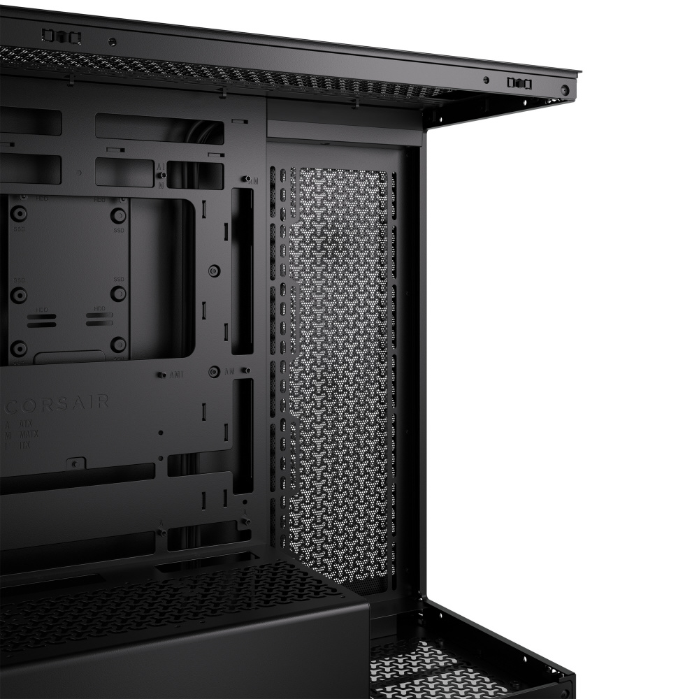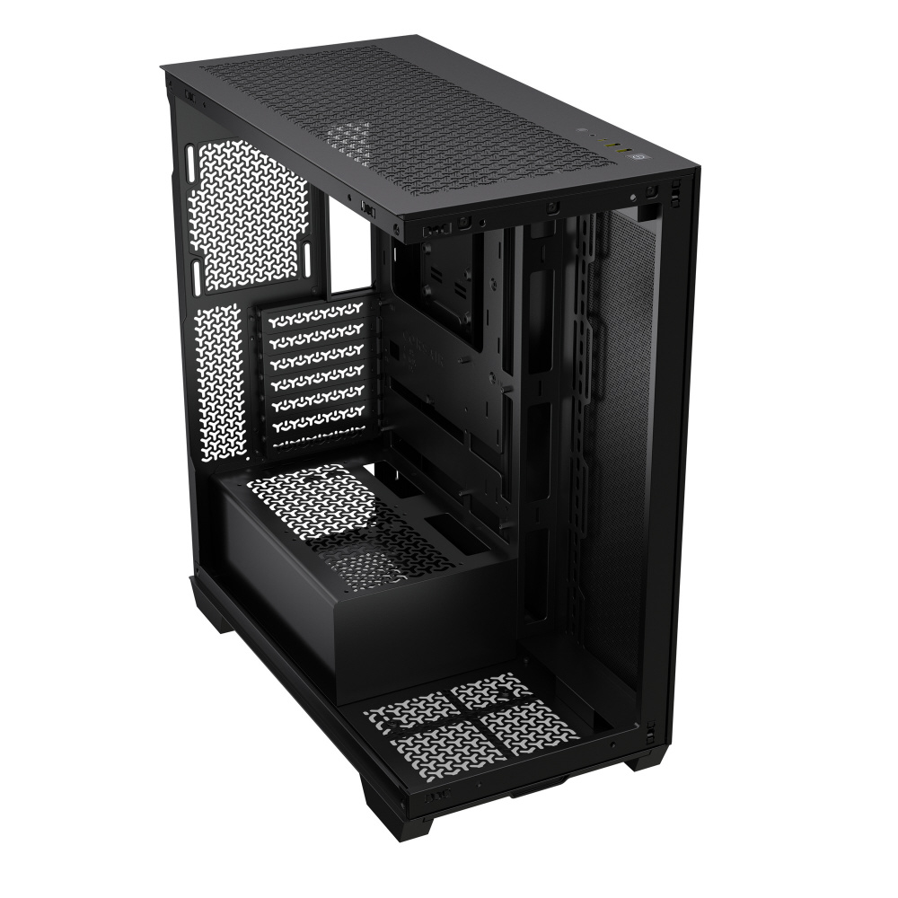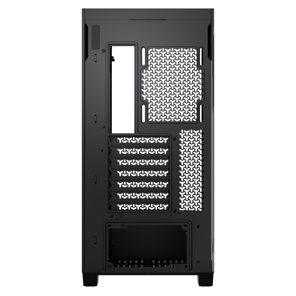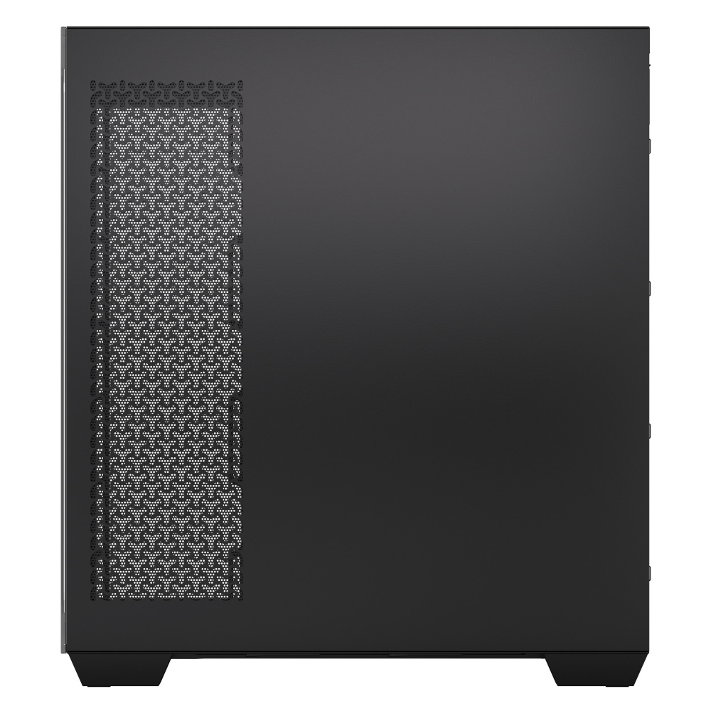 ドレスアップを楽しめるピラーレスデザインを採用。背面コネクタ設計のマザーボードに対応するミドルタワー型PCケース