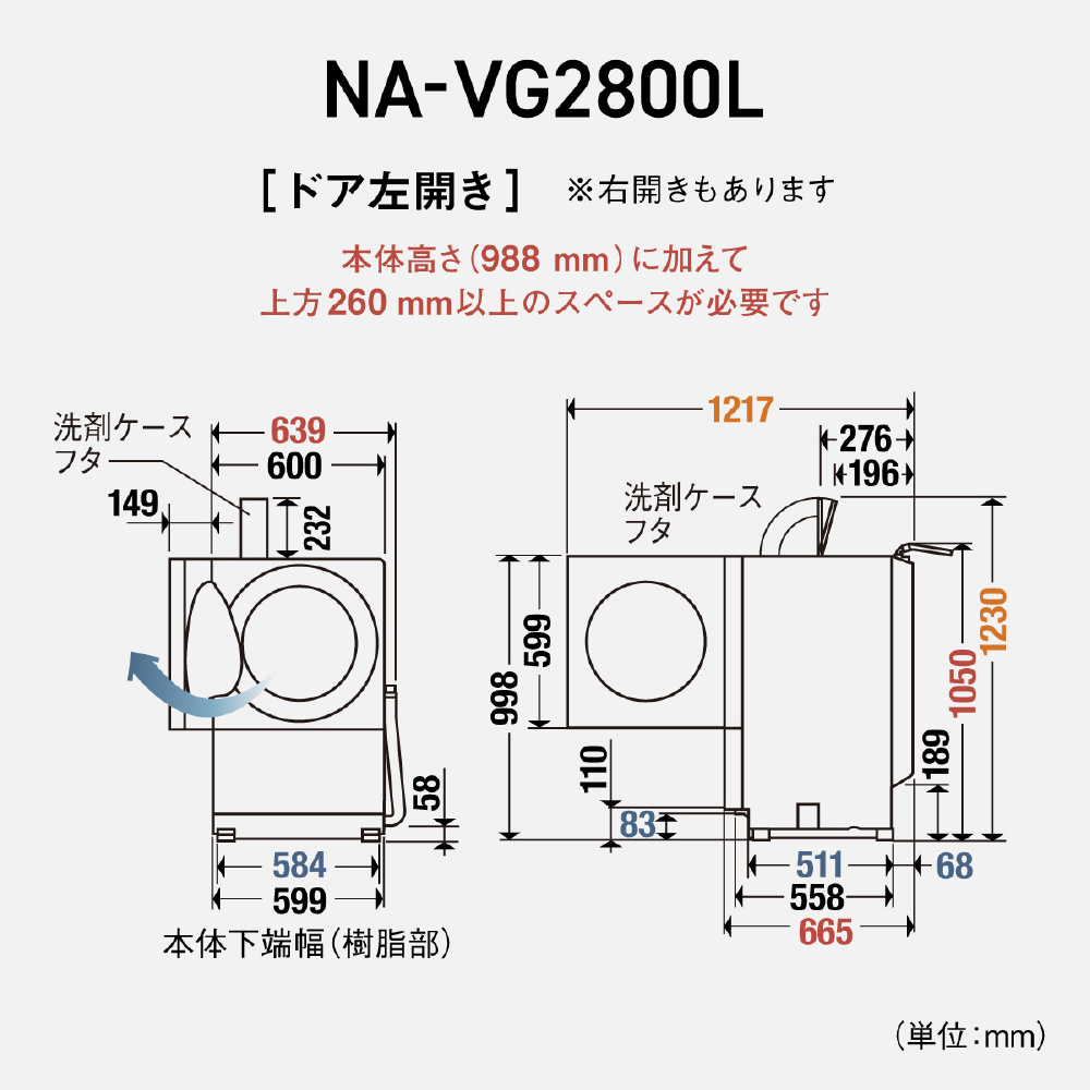 ドラム式洗濯乾燥機 Cuble(キューブル) フロストステンレス NA-VG2800R-S [洗濯10.0kg /乾燥5.0kg /ヒーター乾燥(排気タイプ) /右開き]【生産完了品】