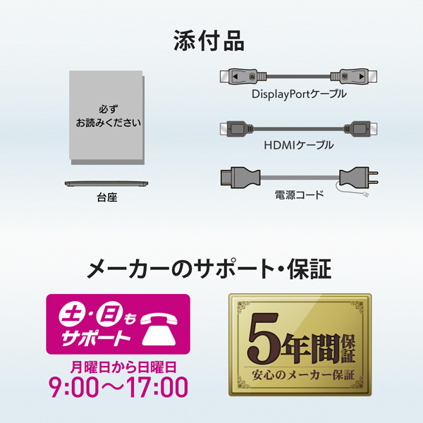 DisplayPortケーブル&HDMIケーブル標準添付