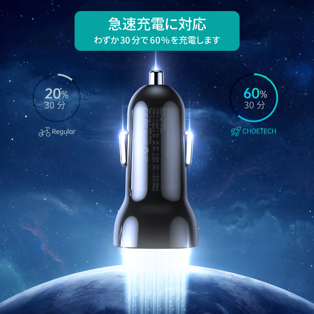 | 商品名 | CHOETECH Type-C 2ポート 40W カーチャージャー ブラック TC0008 |