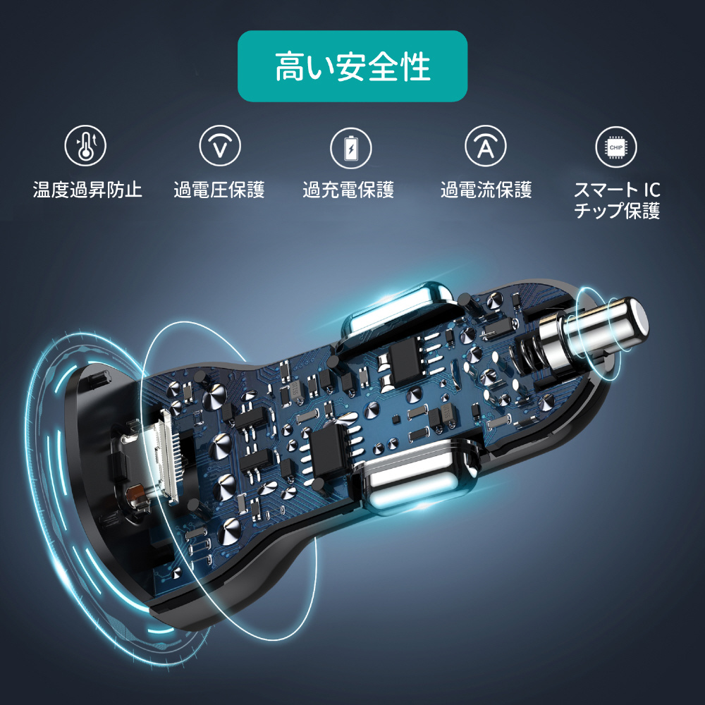 <b>Type-C 2ポート 40W カーチャージャーシガーソケット 車載充電器 急速充電 デュアル 軽量 コンパクト</b>