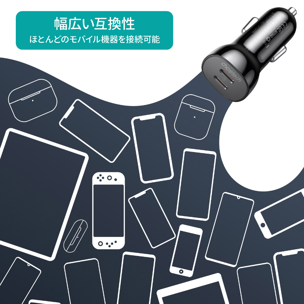 iPhone、USB-Cスマートフォン、タブレット、ゲーム機、ドライブレコーダーなど、多様に対応できます。