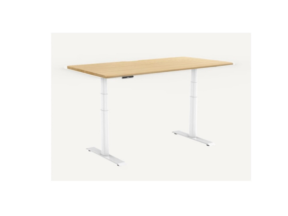 電動昇降式デスク [W1400xD700xH25+600〜1250mm] E8(天板:オーク 配線スリット付き) ホワイト E8WJA+CR1407OAK