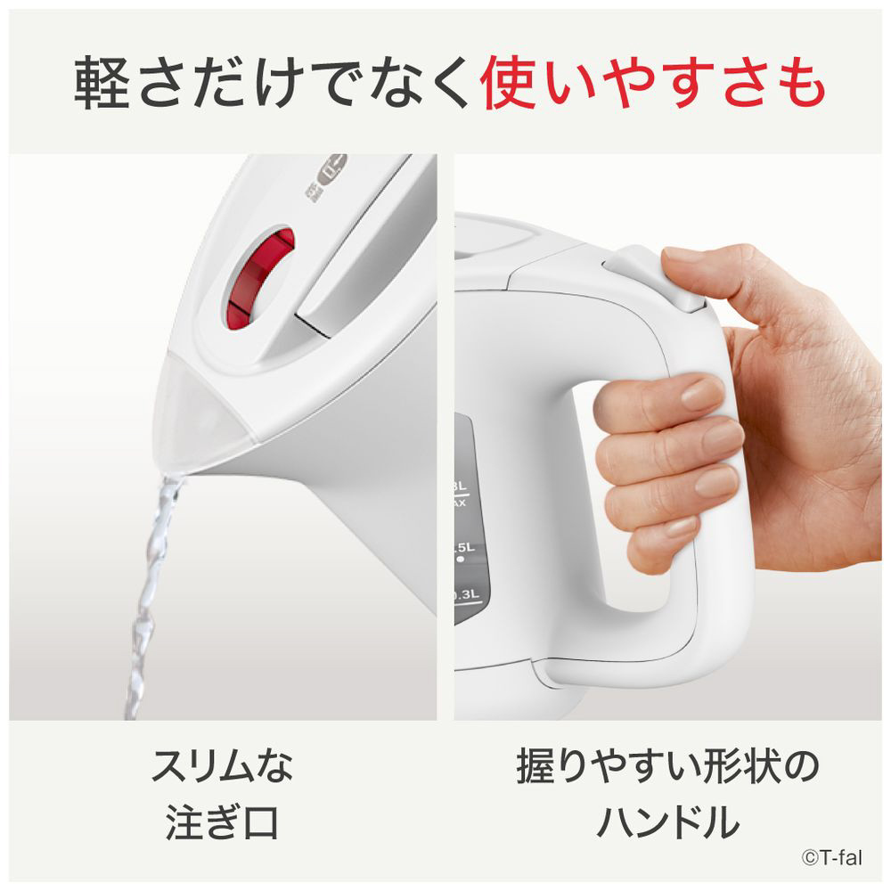 「転倒してもお湯がこぼれにくい」構造と沸騰時に注ぎ口から蒸気が出にくい「省スチーム設計」で、安全面もしっかり配慮。