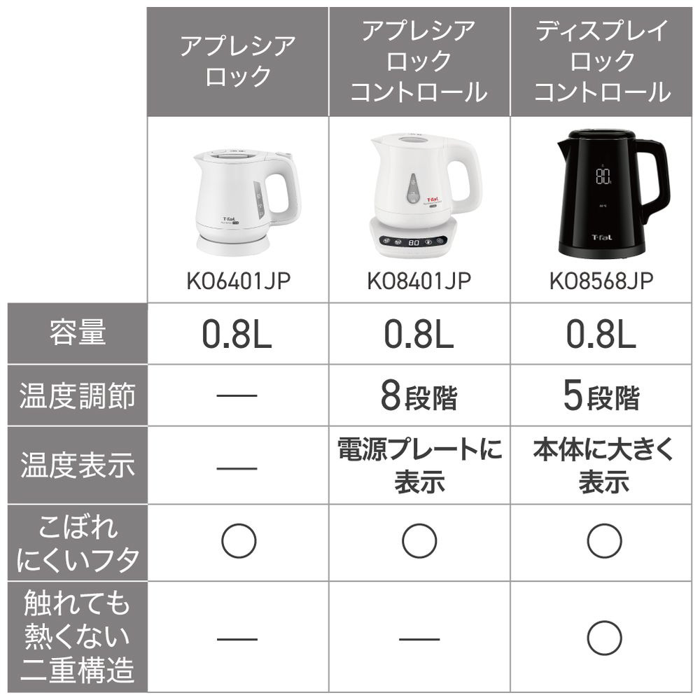 電気ケトル アプレシア ロック ホワイト KO6401JP [0.8L]