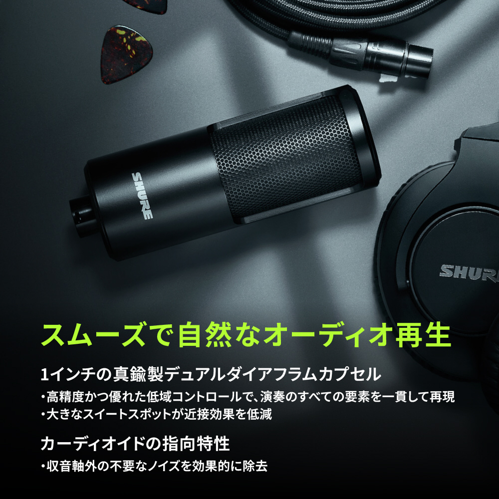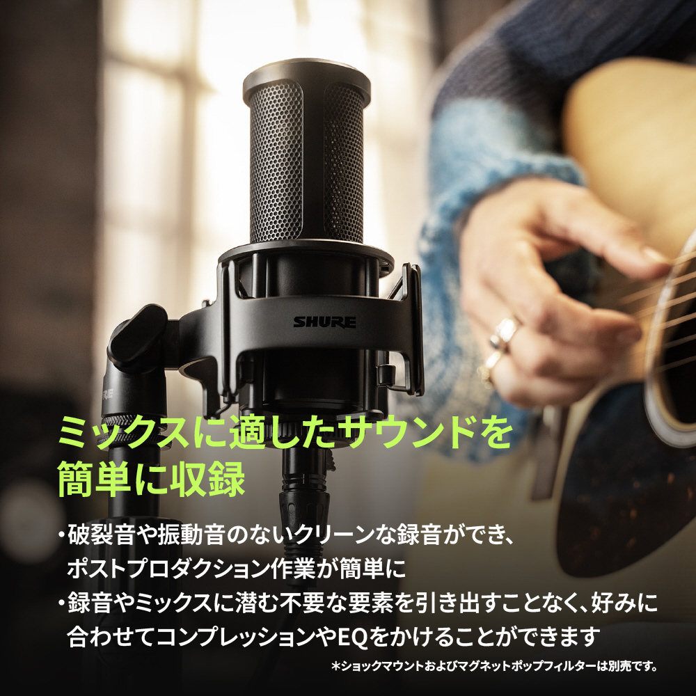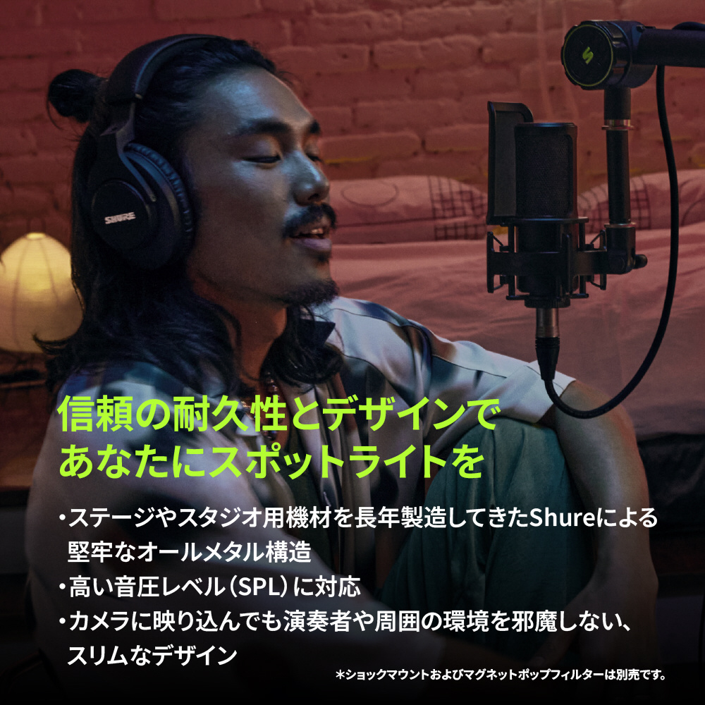 ステージやスタジオ用の信頼性のある機材を長年製造してきたShureによる堅牢なオールメタル構造と、極めて高い音圧レベル(SPL)にも対応する処理能力。