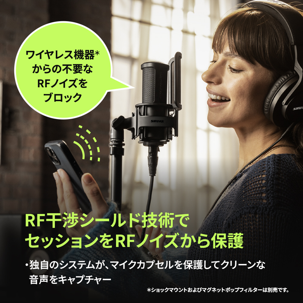 この独自のシステムには、内蔵型ポップフィルターとメッシュ織のファラデーケージが特長で、マイクカプセルをシールドしてクリーンな音声をキャプチャーします。