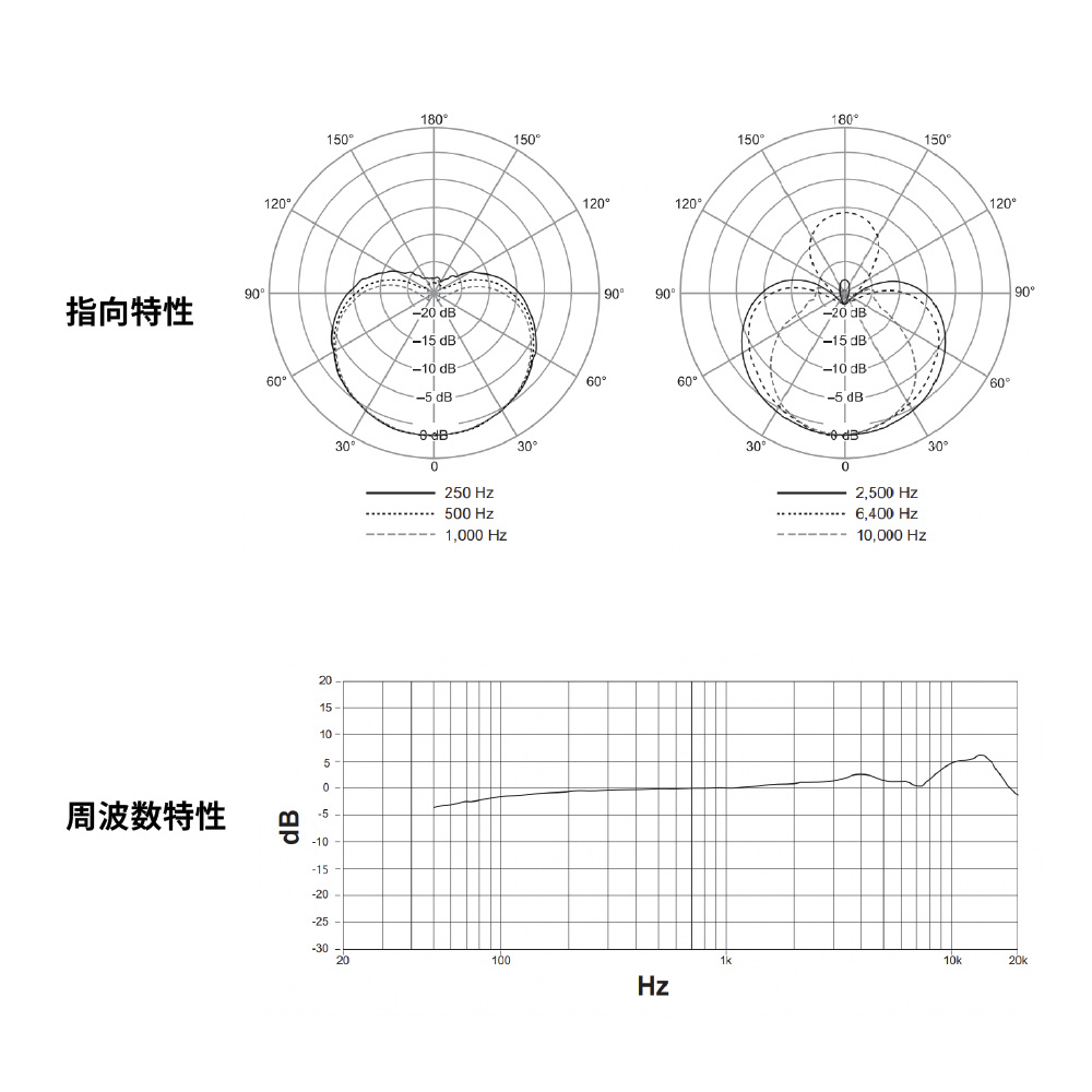 ●電源[1] 1 Pa=94 dB SPL:48 V DC ファンタム電源 (5.3 mA)