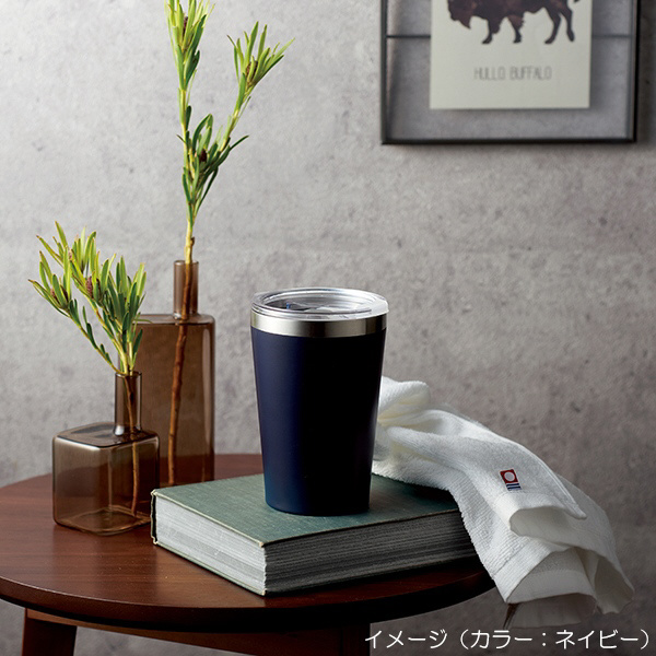 保温・保冷性に優れた真空二重構造のカップインタンブラー。コンビニのコーヒーをカップごと入れておけば美味しい温度が長続き。車のドリンクホルダーにも入り、水滴が垂れないので快適に使えます。優れた吸水性を誇る今治タオルとのセット。