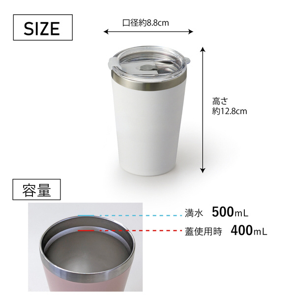 | 仕様1 | ■本体サイズ:蓋付真空二重構造タンブラー-約直径8.8×高さ12.8cm・容量:約400ml、ウォッシュタオル-約34×約30cm ■素材:タンブラー本体-ステンレス、蓋-ポリプロピレン・シリコン・TPE、タオル-綿100% ■食洗機対応:不可 ■電子レンジ対応:不可 ■セット内容:蓋付真空二重構造タンブラー×1、ウォッシュタオル×1 |
