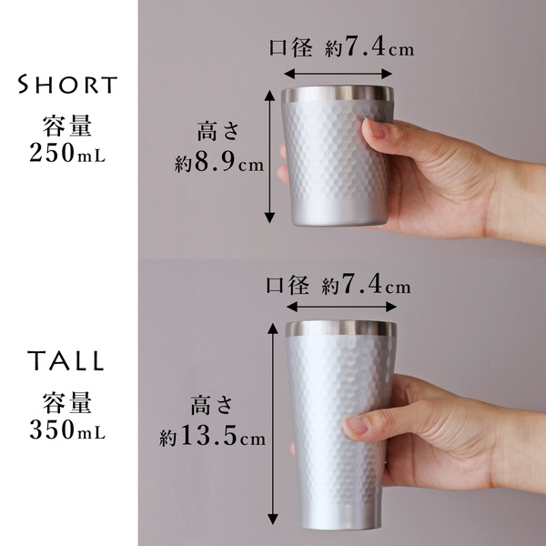 | 仕様1 | ■本体サイズ:真空二重構造タンブラー-約直径7.4×高さ13.5cm・容量約350ml、真空二重構造カップ-直径約7.4×高さ約8.9cm・容量約250ml ■素材:ステンレス ■食洗機対応:不可 ■電子レンジ対応:不可 ■セット内容:真空二重構造タンブラー×1、真空二重構造カップ×1 |