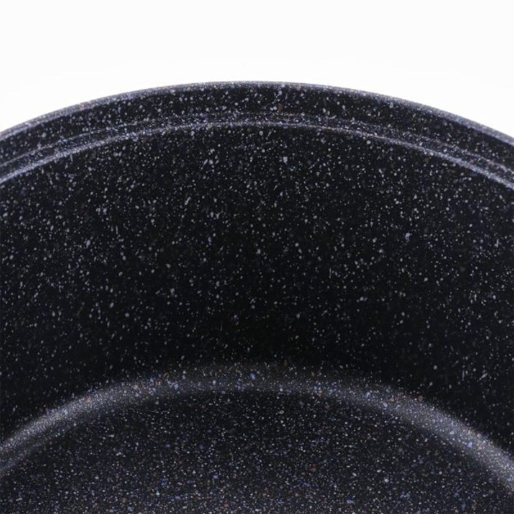 内面はふっ素樹脂塗膜加工、ダイヤモンドコート、マーブルコートの3層構造でこびりつきにくく、外面もふっ素樹脂塗膜加工とマーブルコートでコーティングされています。